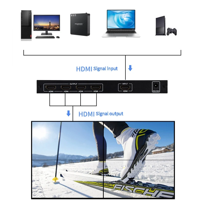 Контроллер видеостены MOOL 2X2, 1 вход HDMI, 4 выхода HDMI, 2x13x14...