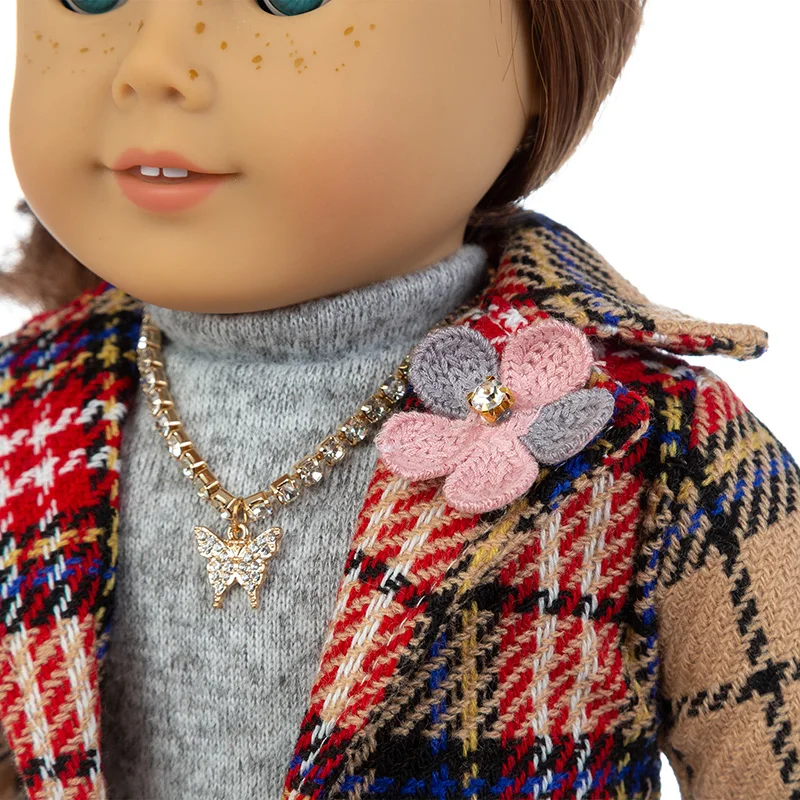 Новый костюм из трех предметов в клетку подходит для куклы американской девочки 18 дюймов кукольная одежда, обувь не входит в комплект.