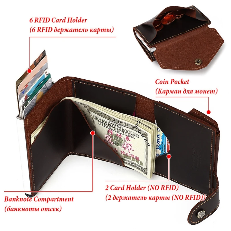 Кошелек мужской, с RFID-блокировкой, с отделением для карт и монет