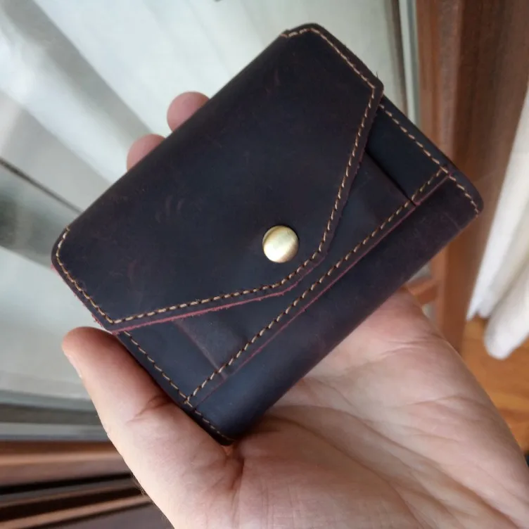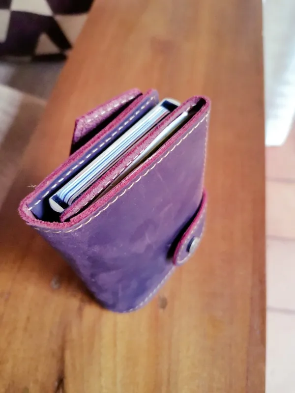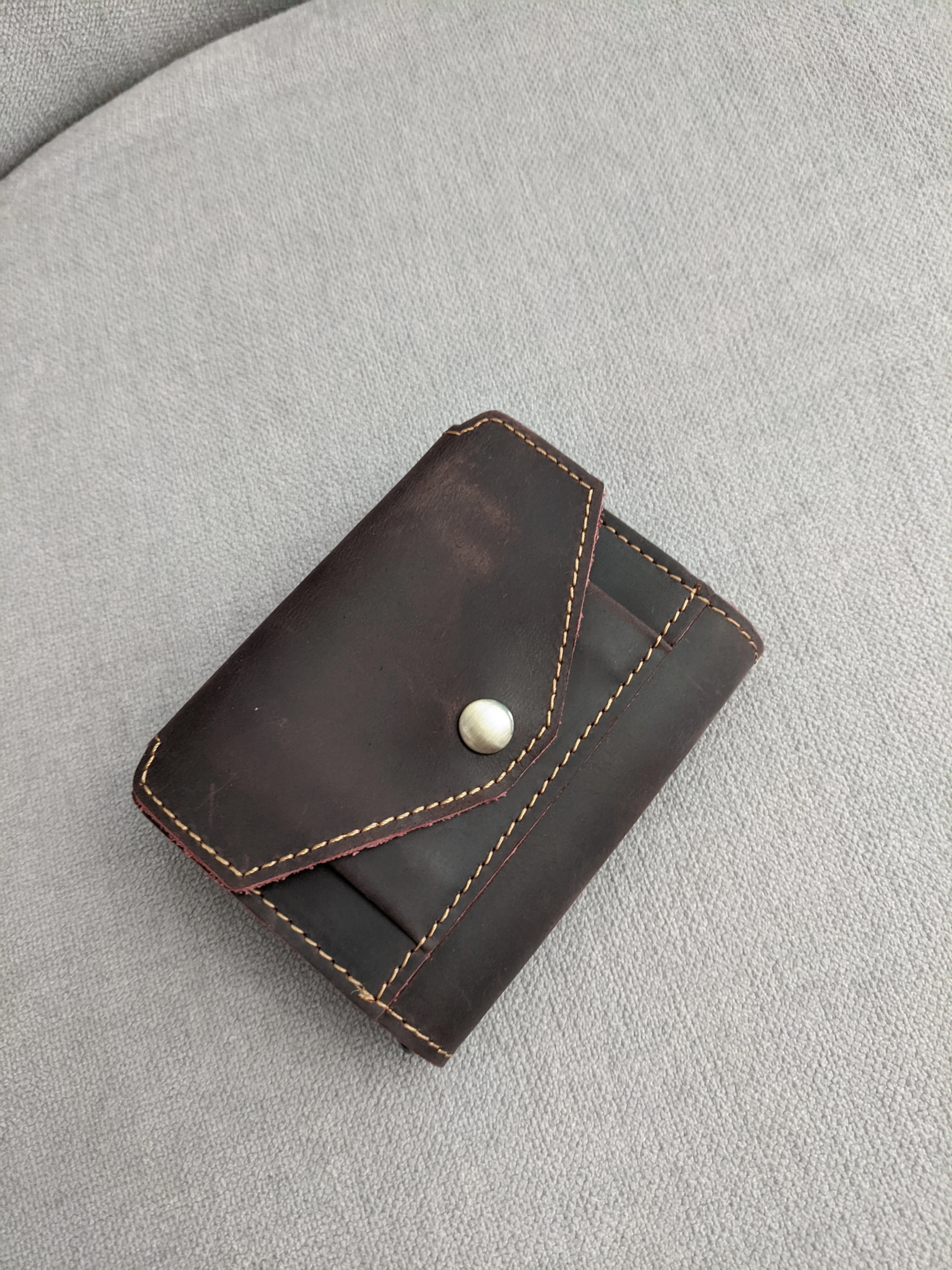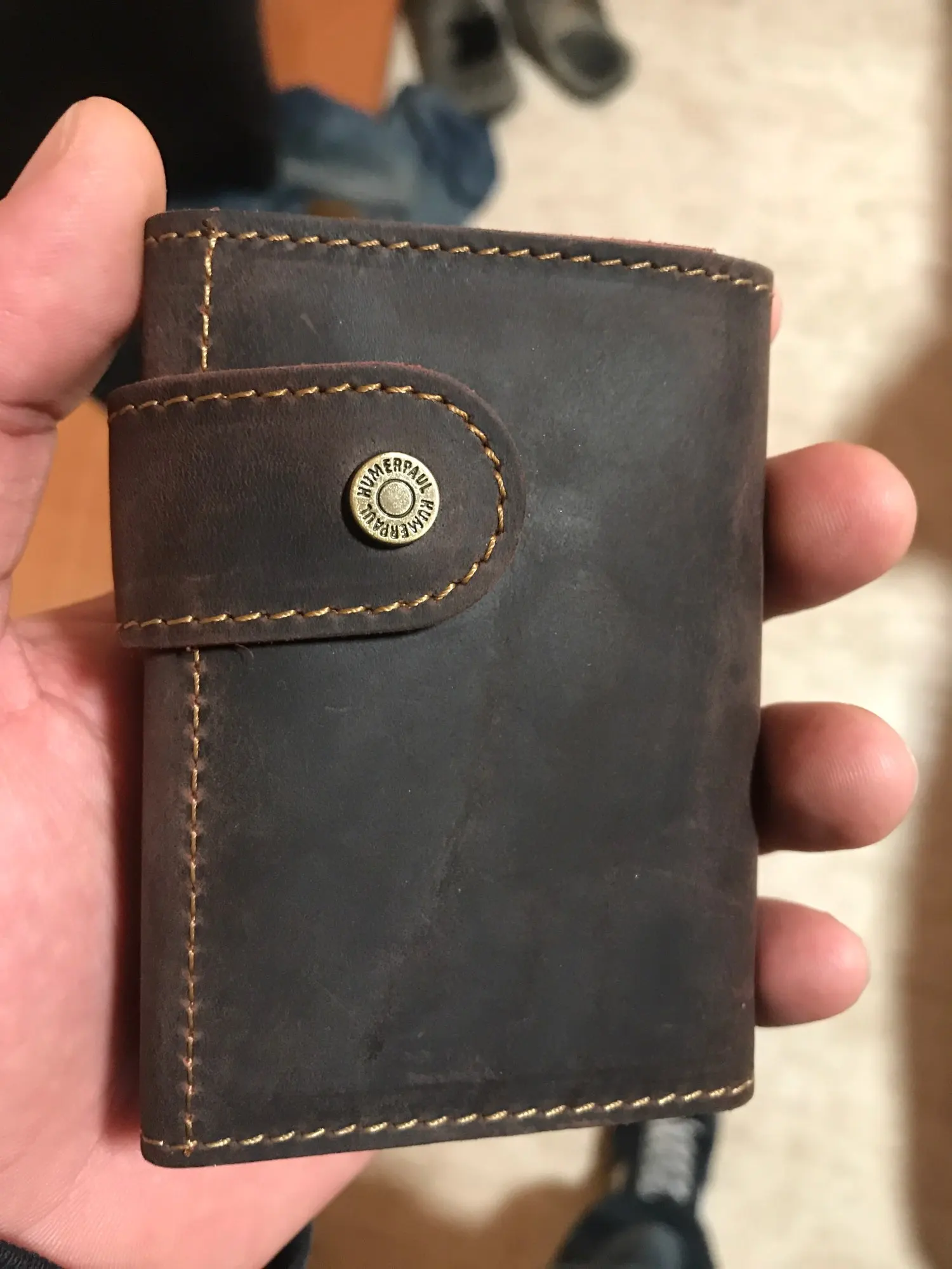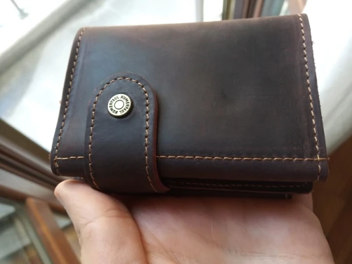 честно говоря, для меня маловат. сильно много купюр сюда не положишь, да и карточка может выпасть. качество кожи отличное, тут без нареканий