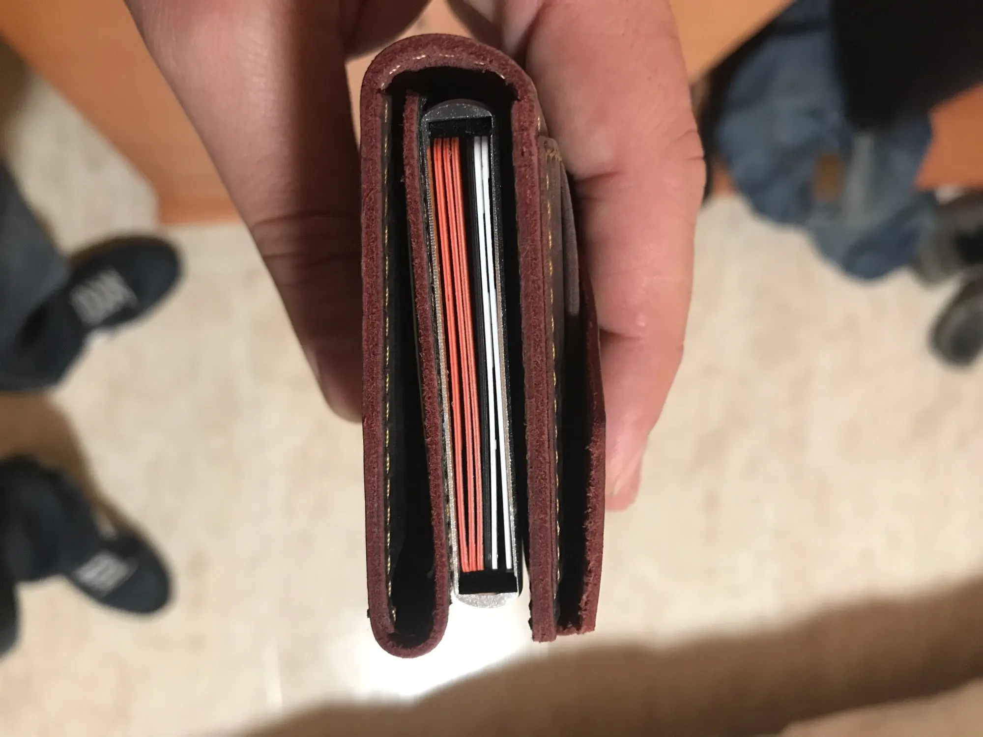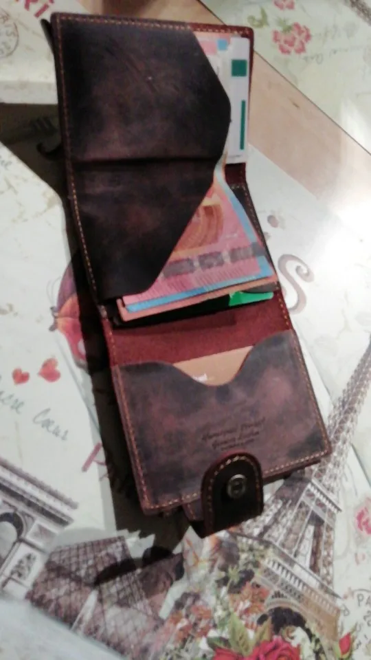 Очень толстый бумажник, толщина 3,5 см, искусственная кожа, очень мягкая текстура кожи, но дизайн очень полезен, так как вы можете взять замену и карты, не открывая бумажник.