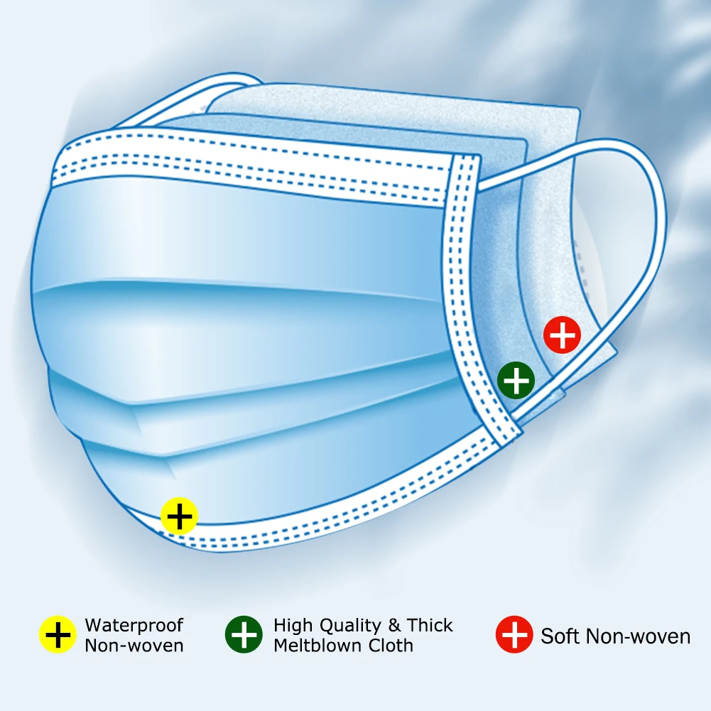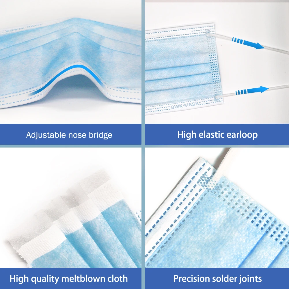 1.100% новый и высокое качество.2. Одноразовые качественный уход за кожей лица маска для лица, из 3 слоев материала. Внешний материал-водонепроницаемая Нетканая ткань, средний слой-материал, который эффективно фильтрует, внутренний материал-мягкая Нетканая ткань, которая может поглощать влагу тела, чтобы сохранить нашу кожу сухой.3. Алюминиевая полоса на мостике носа может регулироваться, чтобы соответствовать вашему лицу. Эластичная Ушная петля легко носить и не давит на уши.