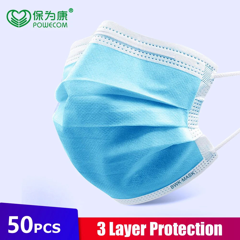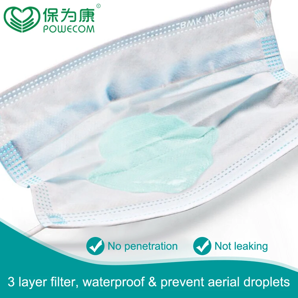 Маска POWECOM одноразовая Защитная 3-слойная из нетканого материала, 50-300 шт.