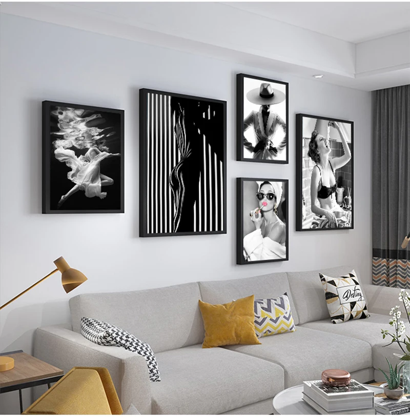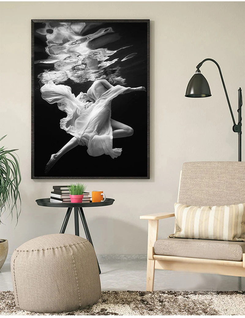 Модная Настенная картина черного и белого цвета с принтом подводной женщины, сексуальный женский холст, Настенная картина, Современный домашний декор