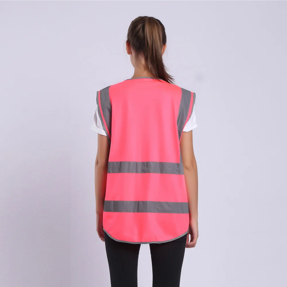 Светоотражающий велосипедный жилет, жилет высокой видимости, рабочая жилетка с карманами, ярко-розовый