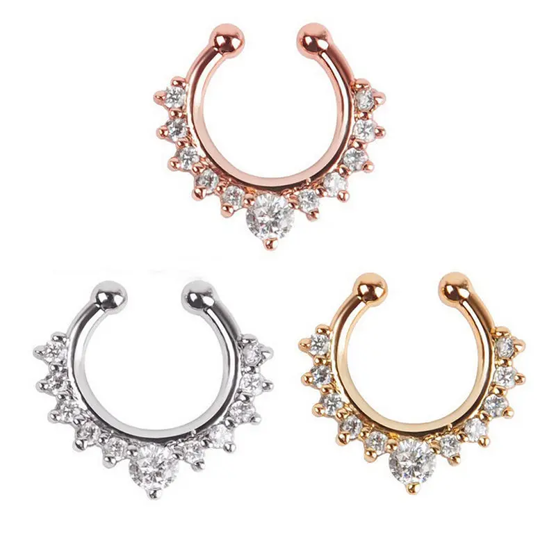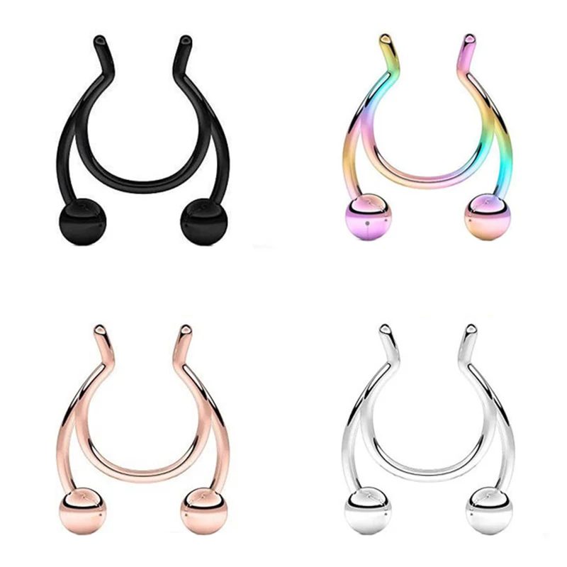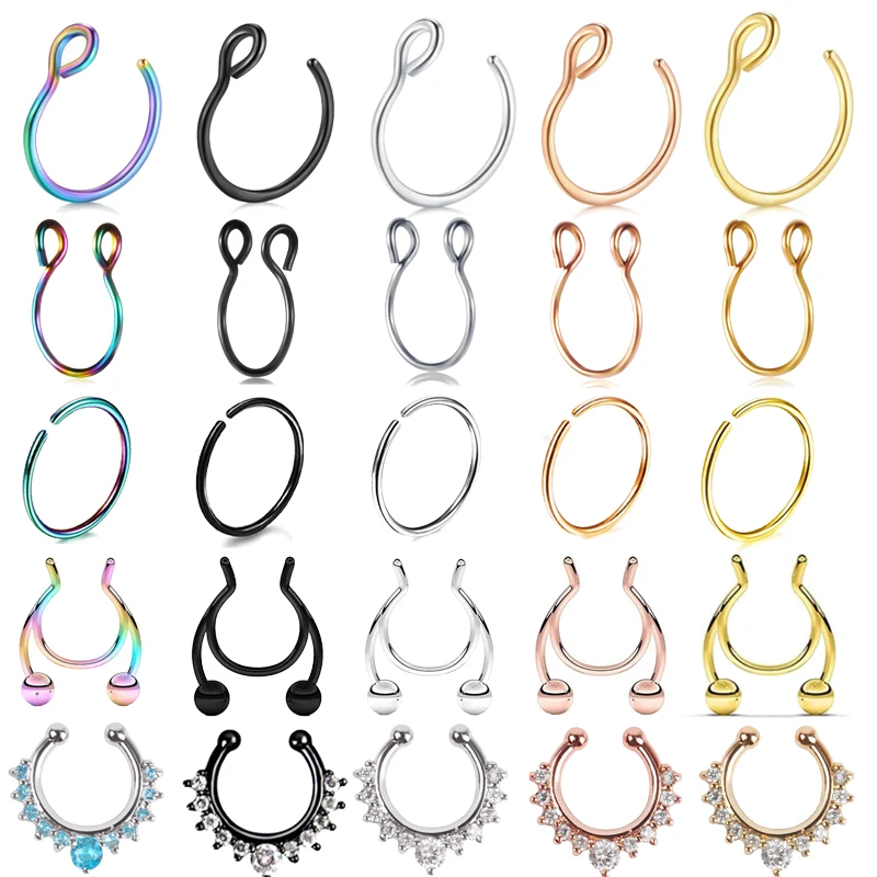 Кольцо-обруч для носа, из нержавеющей стали, с искусственной перегородкой для губ, ушей, носа, без пирсинга