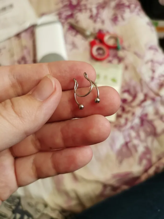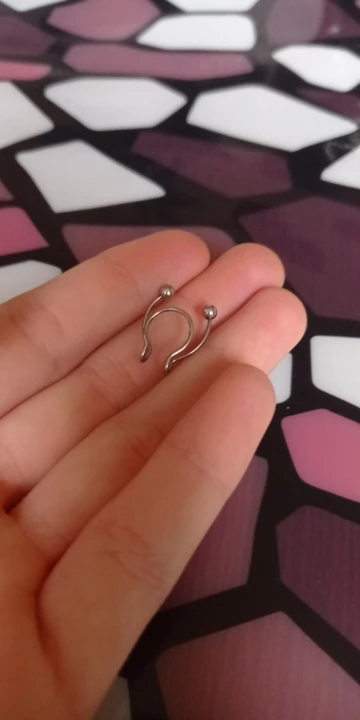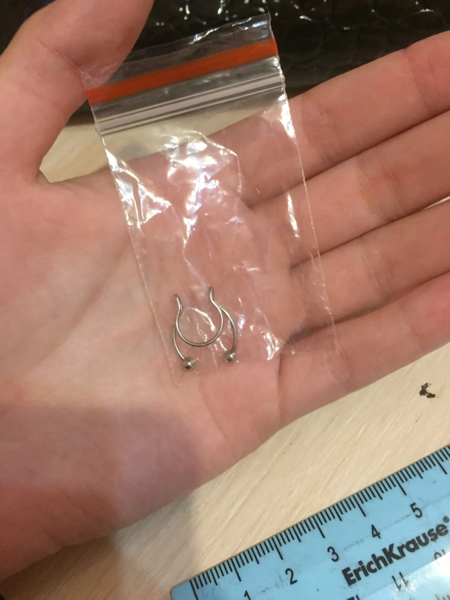 очень хорошие кольца, идеальны по размеру, выглядит будто настоящий прокол, всем рекомендую кто не хочет прокалывать нос