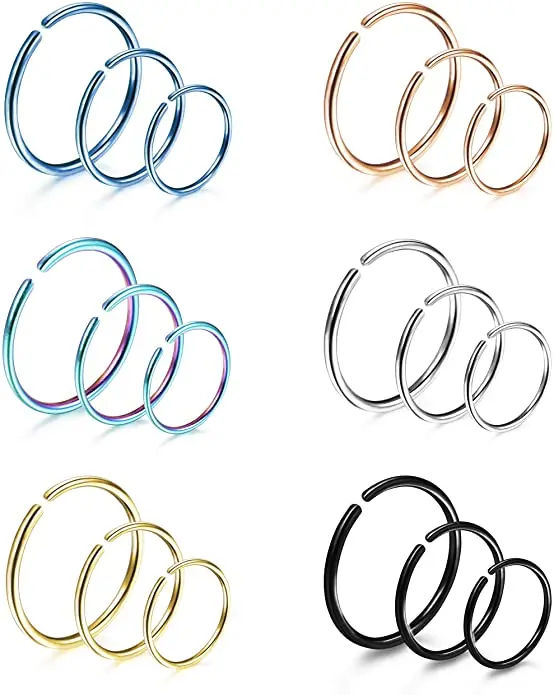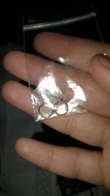кольца выглядит маленькими, но на лице смотрится ужасно. если надевать на нос, то это кошмар, а если на губу то выглядит ещё круто.чтобы надеть, нужно сильно расширять кольцо, оно искривляется. хотя изначально 1кольцо пришло уже искревленным . ну такое