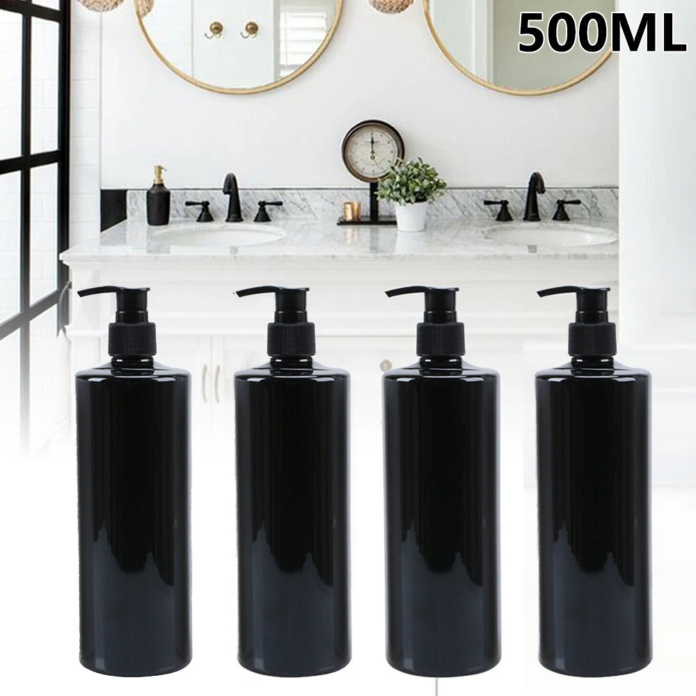 4x многоразового 500 мл пустые бутылки насоса лосьона для гель мыла шампунь 500 мл; Цвет Черный; Обувь на плоской подошве с плеча нажатия бутылка для лосьона