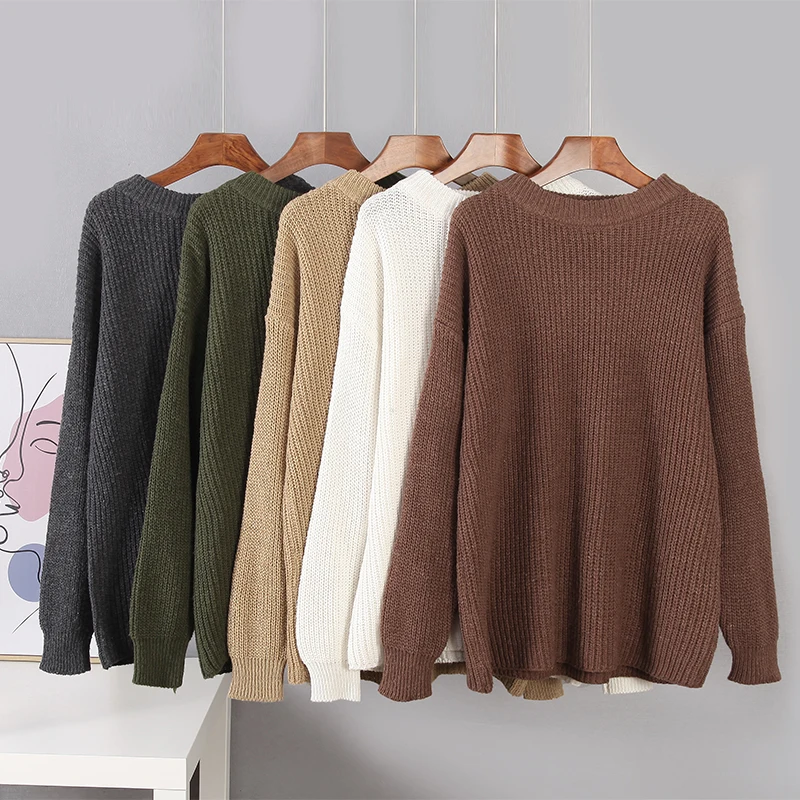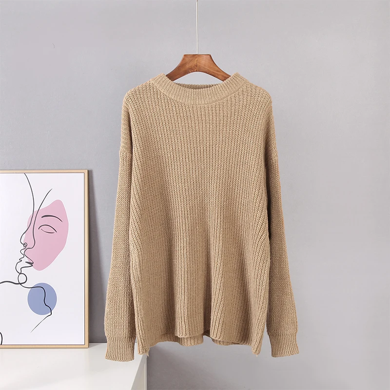 Вязаный модный теплый свитер свободного покроя с длинным рукавом дл...