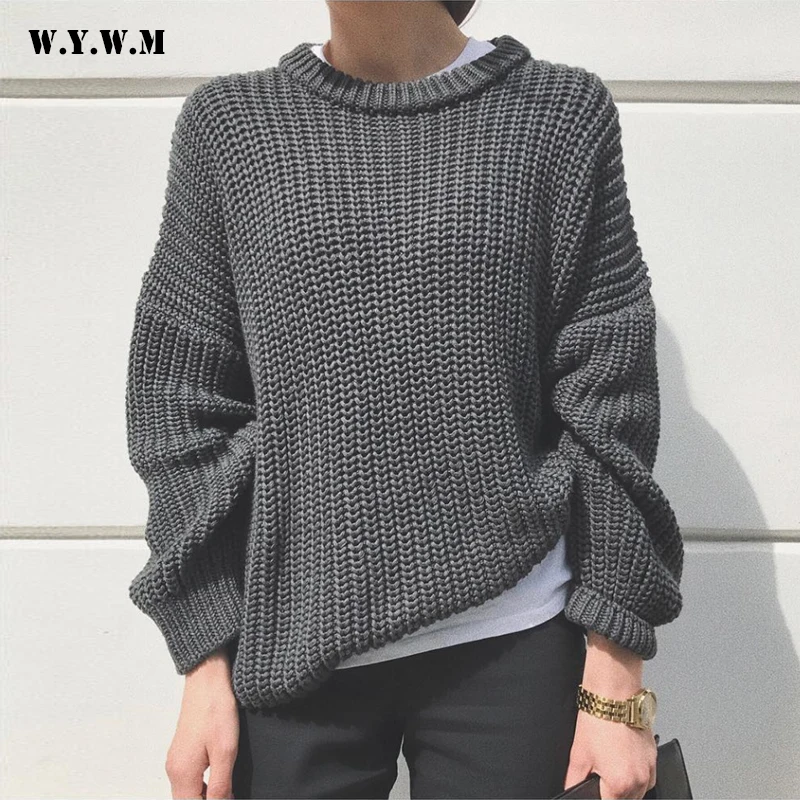 Женский вязаный Свитер оверсайз WYWM, зимние свободные повседневные кашемировые теплые пуловеры, Женские базовые джемперы с длинным рукавом, женские топы