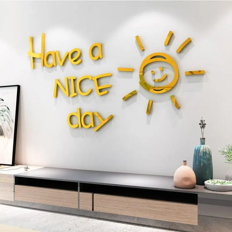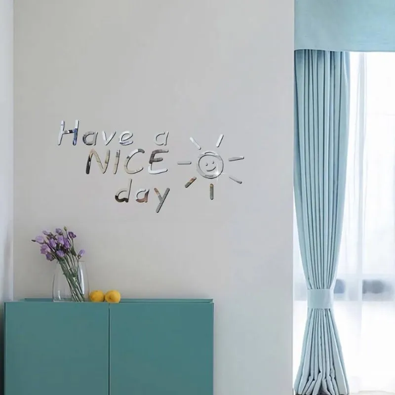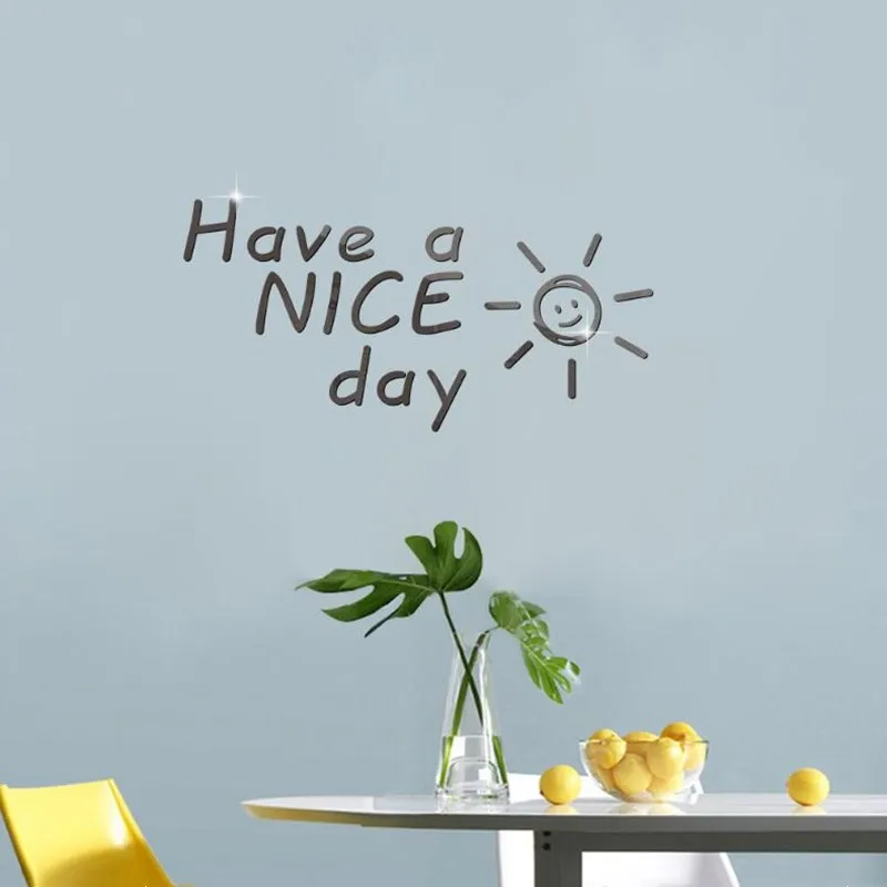 Зеркальная 3d-наклейка сделай сам, настенная наклейка Улыбка и солнце для хорошего дня, зеркальная Настенная Наклейка для детской комнаты, гостиной, домашнее украшение, Настенная Наклейка