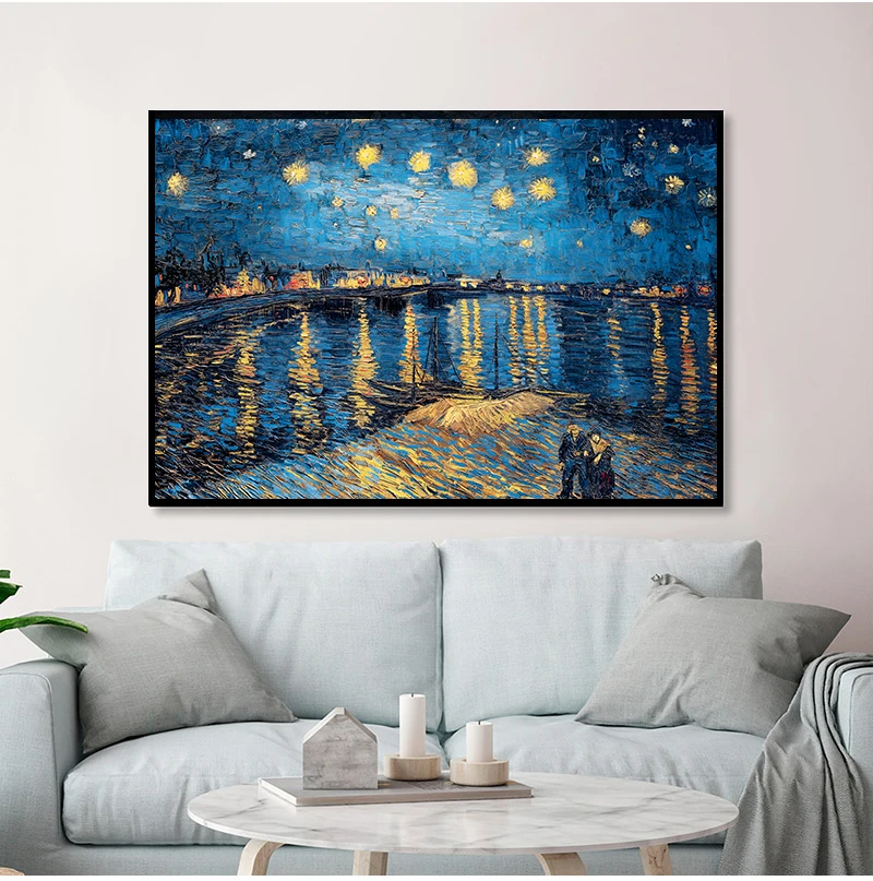 Звездная ночь на реке роны от Винсента Ван Гога, известный художник, Художественная печать, Настенная картина, Картина на холсте