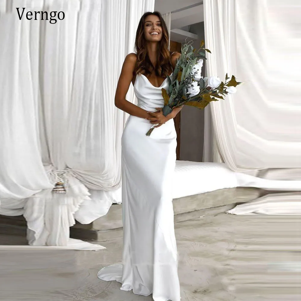 Пляжное свадебное платье Verngo 2020, простое мягкое женское белое сексуальное длинное вечернее платье на бретелях-спагетти с открытой спиной, на заказ