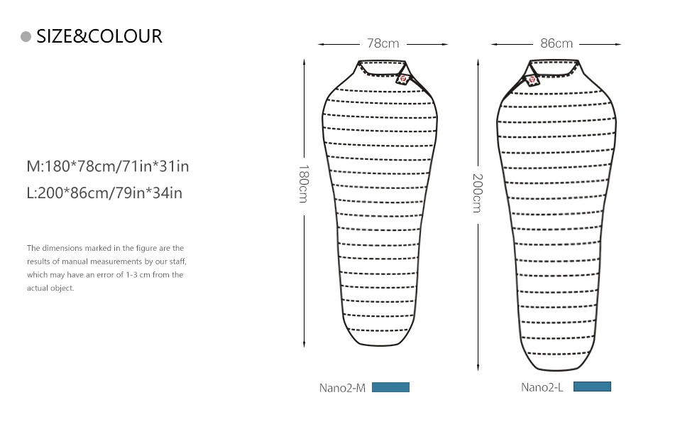 Вес спального мешка:M-624g / L-742g(Не включает вес компрессионных пакетов и мешков для хранения)