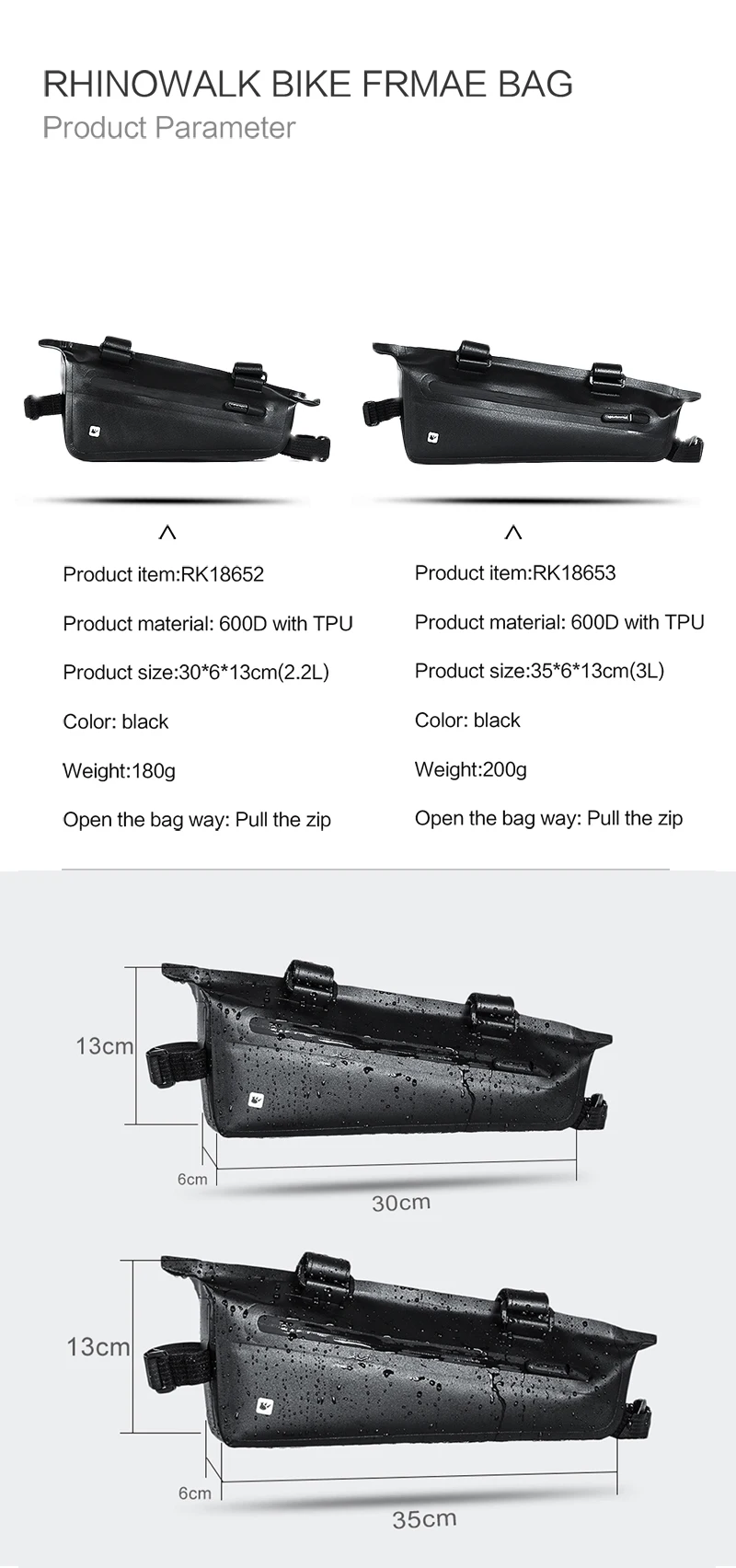 Треугольная велосипедная сумка Rhinowalk, водонепроницаемая сумка на раму велосипеда 2,8 л, для велоспорта, сумка на багажник, аксессуары для упаковки