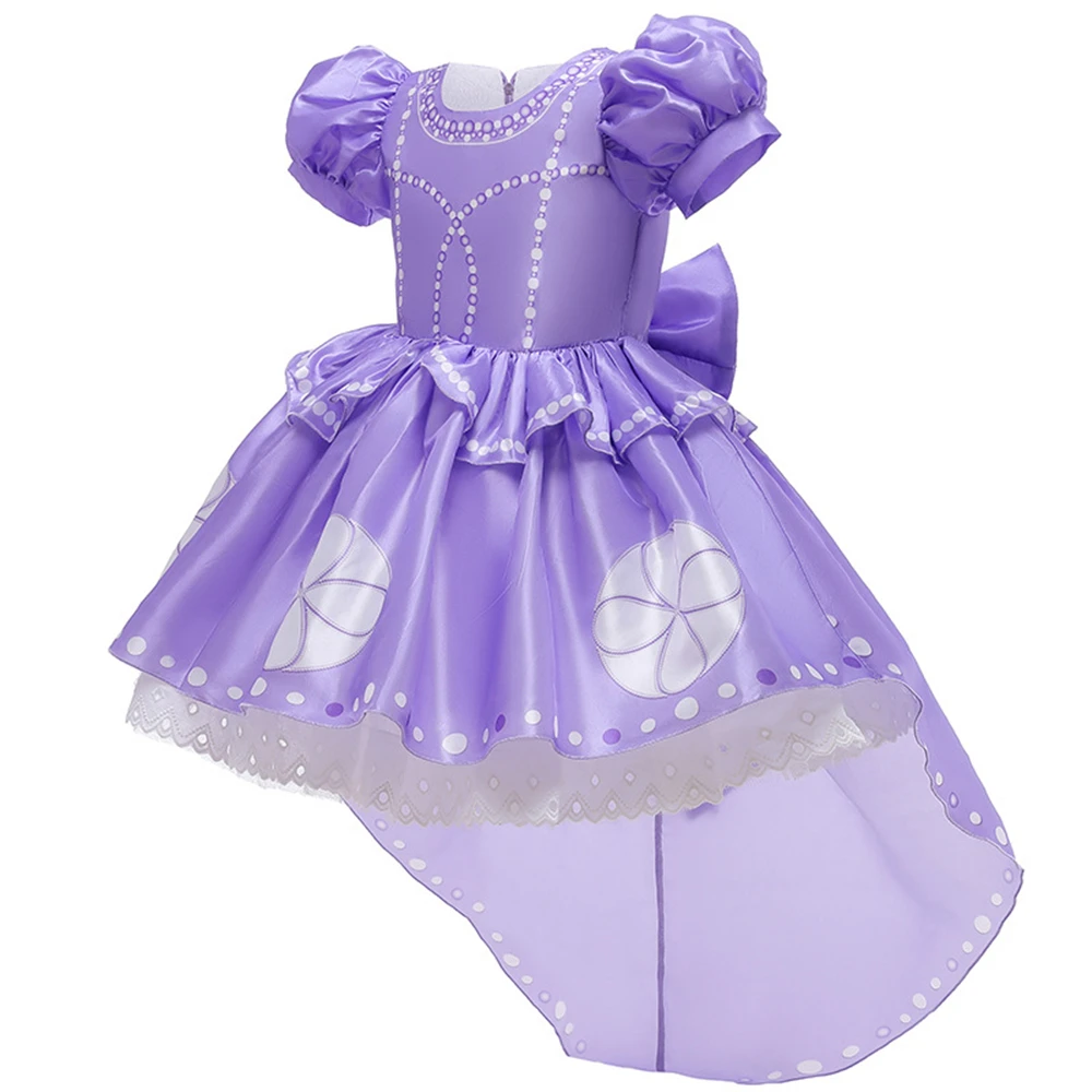 Платье принцессы Софии на день рождения, для Хэллоуина, детские костюмы Софии, платье Рапунцель, короткое, спереди, длинное, сзади, фиолетового цвета