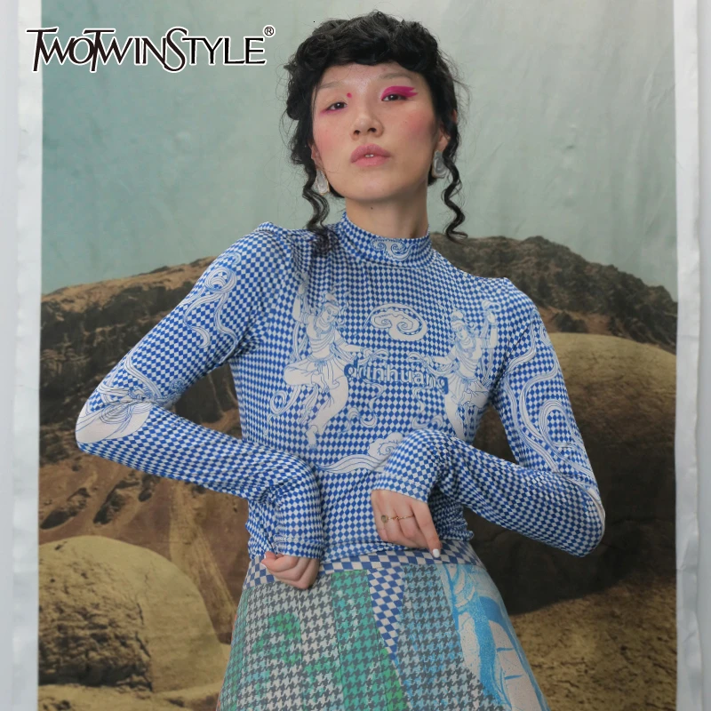 Женская футболка с мультяшным принтом TWOTWINSTYLE, осенняя, облегающая, с длинным рукавом, 2020