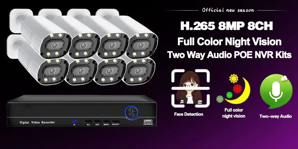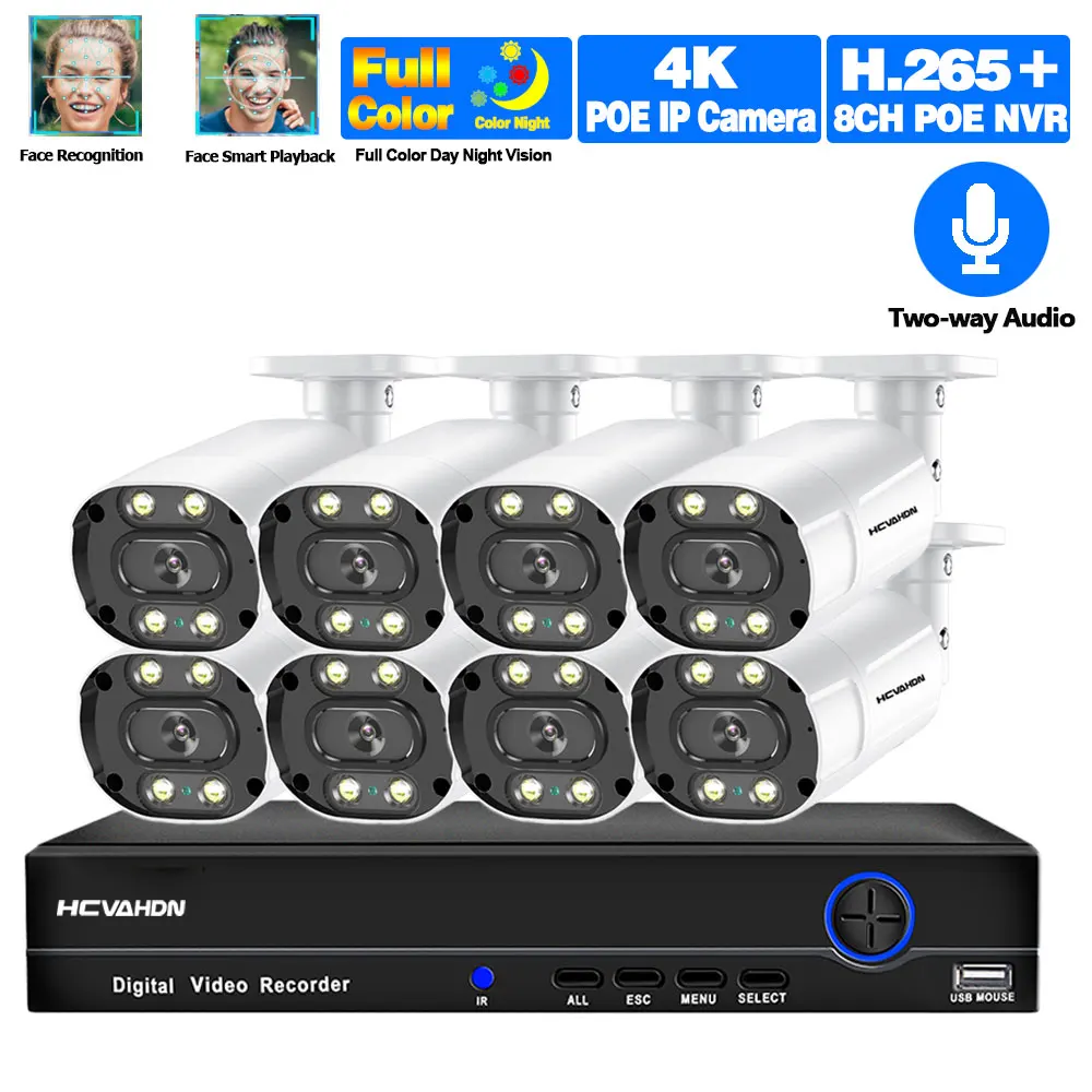 Система видеонаблюдения, 4k, 8 Мп, POE, NVR, 8 каналов, 5 МП, цветной звук, ночное видение, IP набор камеры видеонаблюдения, набор камер