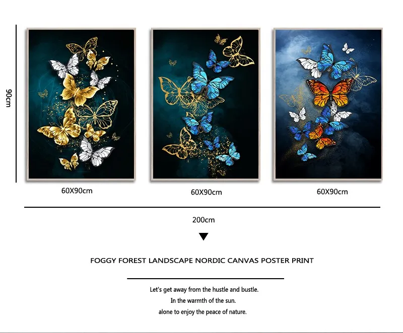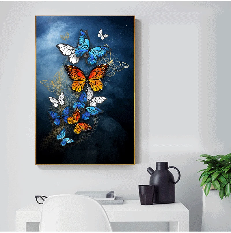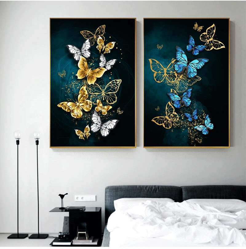 Абстрактная Золотая синяя бабочка настенное искусство современные настенные картины для гостиной Куадрос салон большая желтая бабочка n Печать