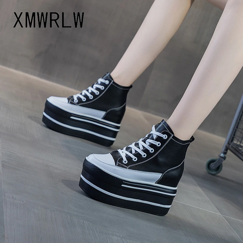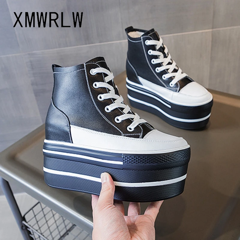 Кеды XMWRLW женские высокие, кожаные повседневные кроссовки, на шнуровке, на высоком каблуке, белыечерные, весна-осень icon star icon star icon star icon star icon star
