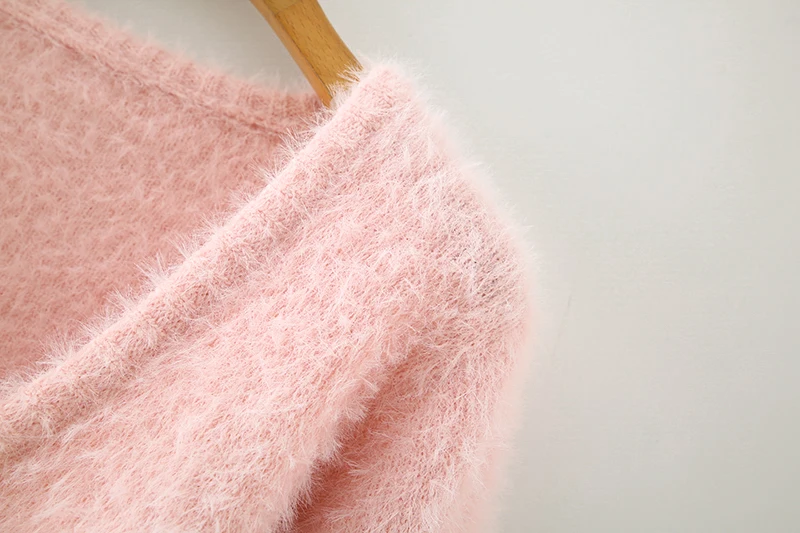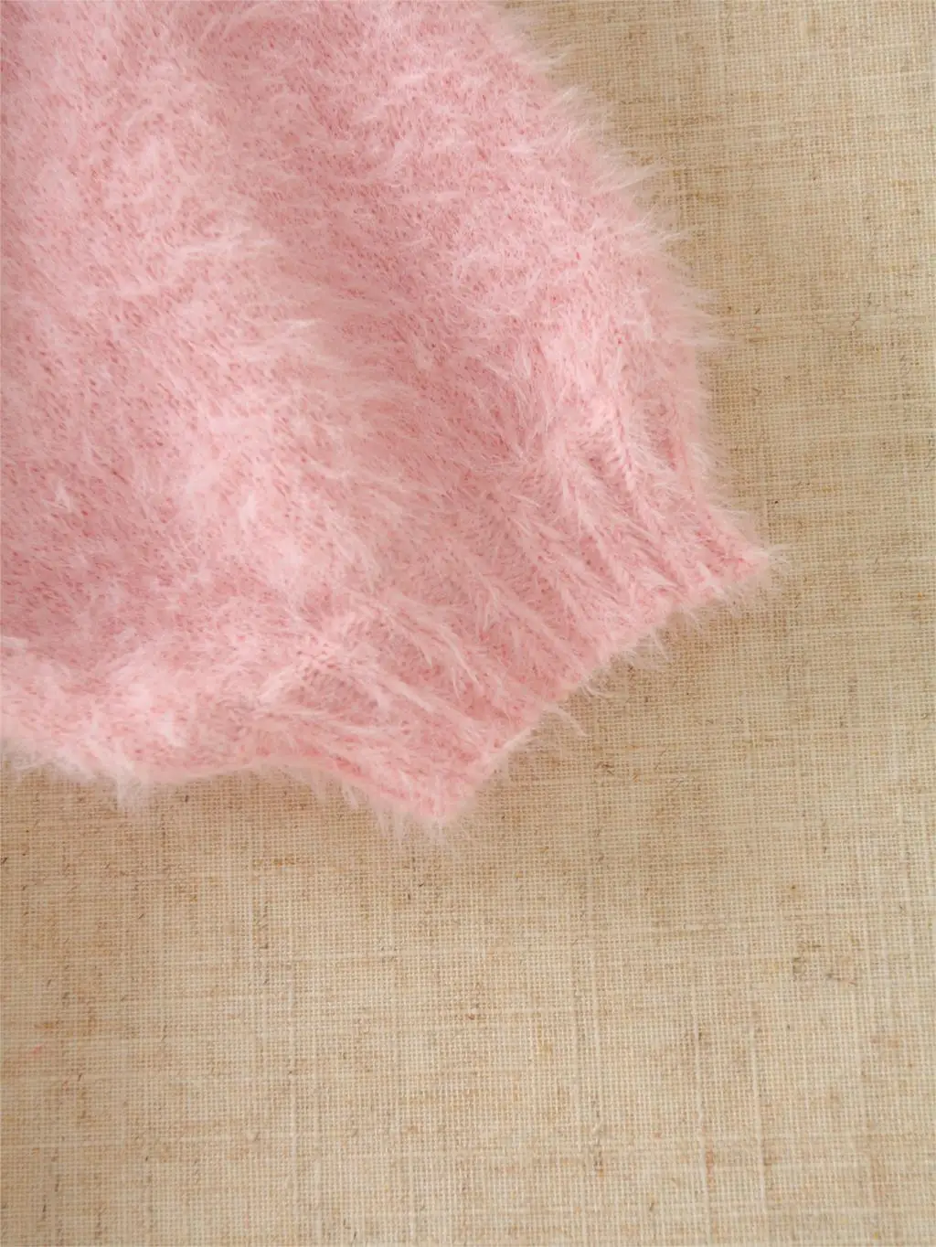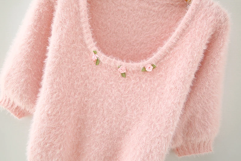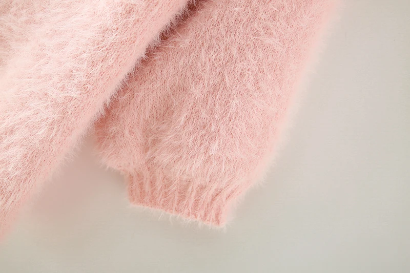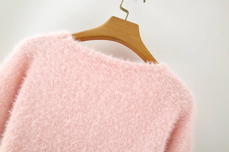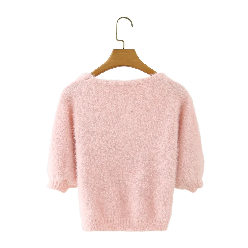 Женский укороченный свитер, розовый вязаный пуловер с квадратным вырезом и пышными рукавами, осень 2020