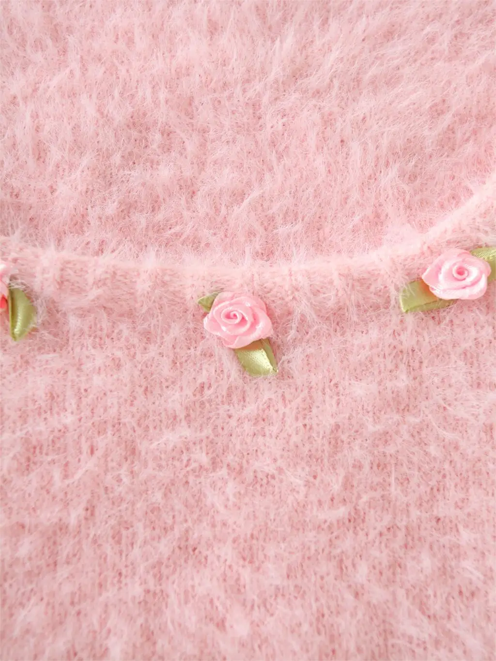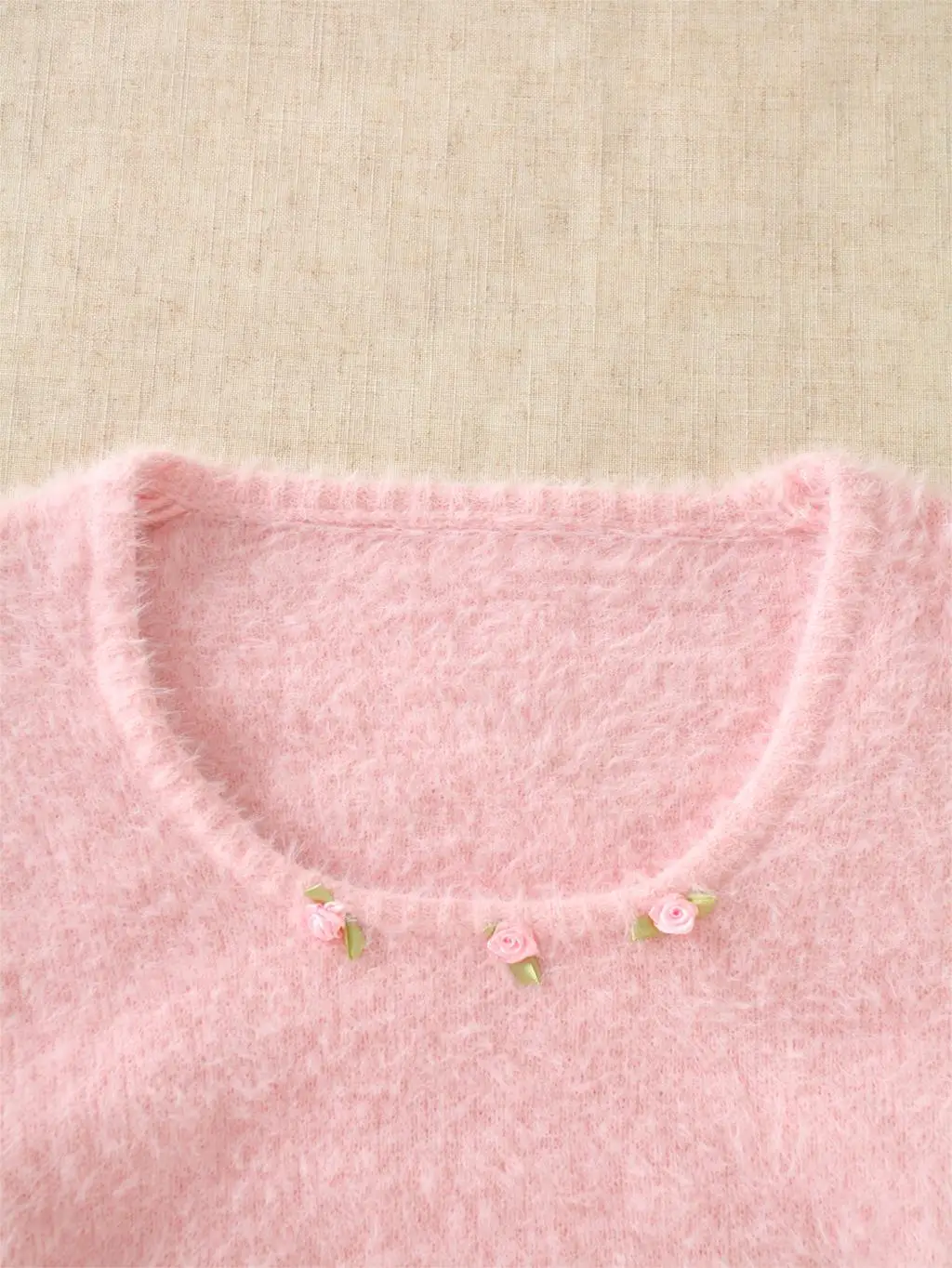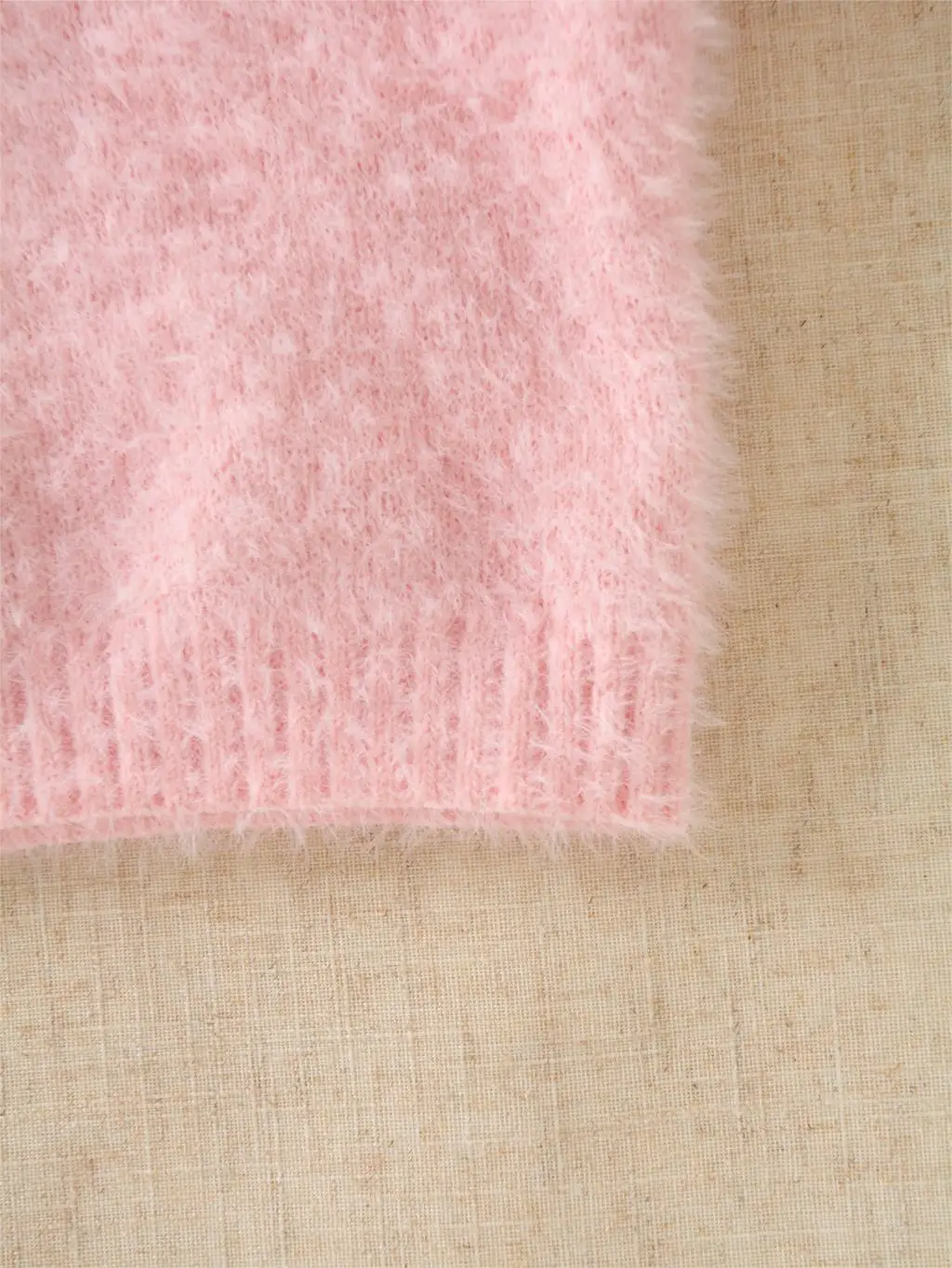 Женский укороченный свитер, розовый вязаный пуловер с квадратным вырезом и пышными рукавами, осень 2020