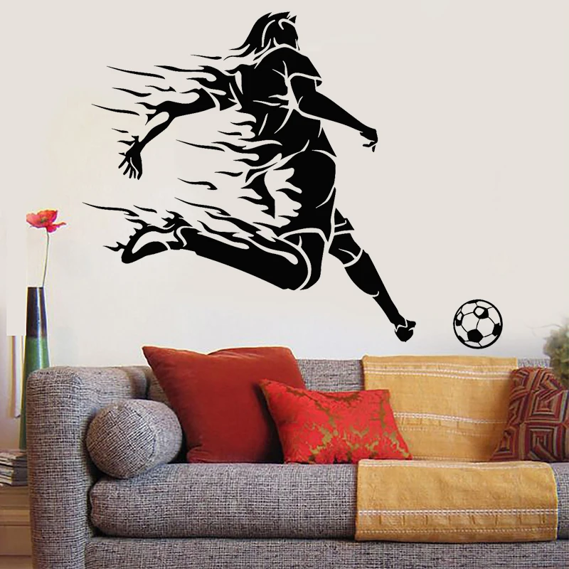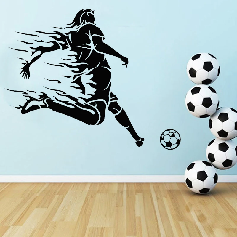 Наклейка футболист Настенная Наклейка с футбольным логотипом наклейка s Футбол виниловая наклейка спортивный фанат домашний декор мяч командная игра художественная роспись украшение для спальни огонь