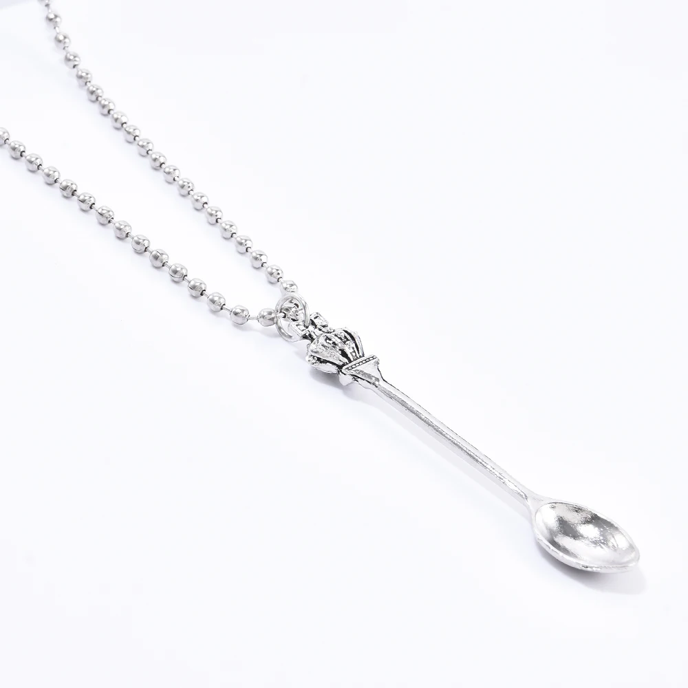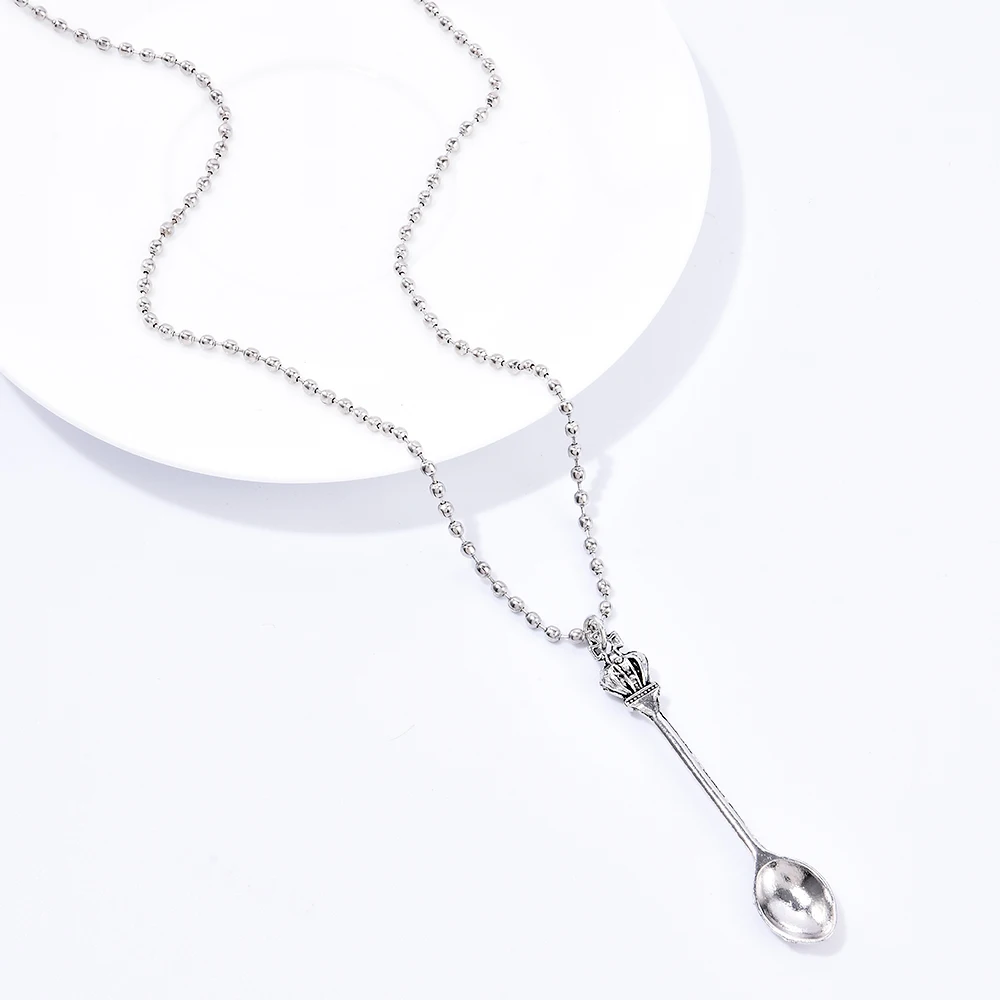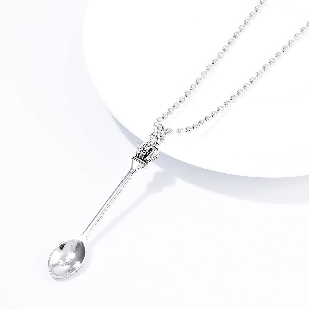 Цепочка с подвеской в форме чайной ложки для мужчин и женщин, длинная цепь с кулоном в форме короны, подходит для свитера, Ювелирное Украшение
