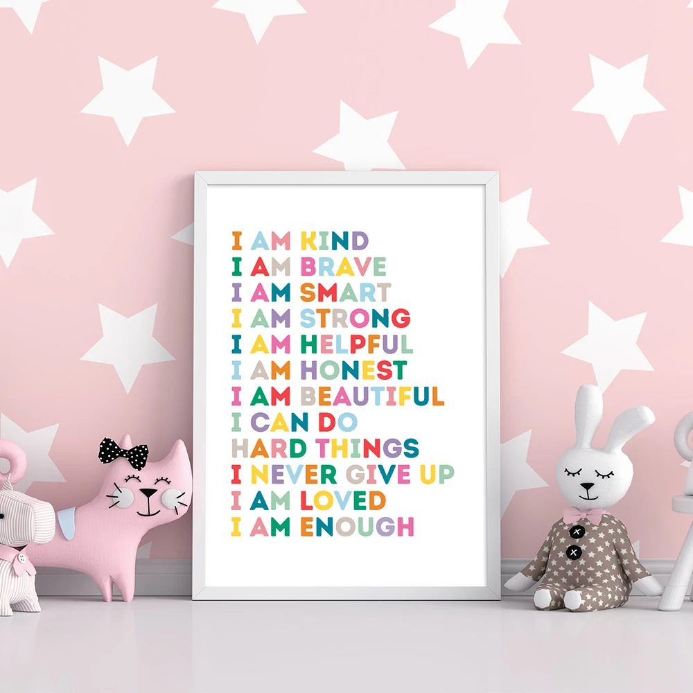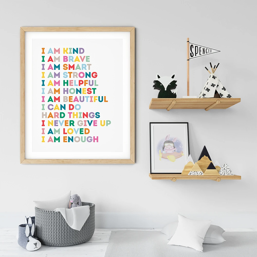 Детские Аффирмации настенная живопись холст я добрый я достаточно Красочный Плакат Печать Детская комната стена игровой комнаты художественный Декор