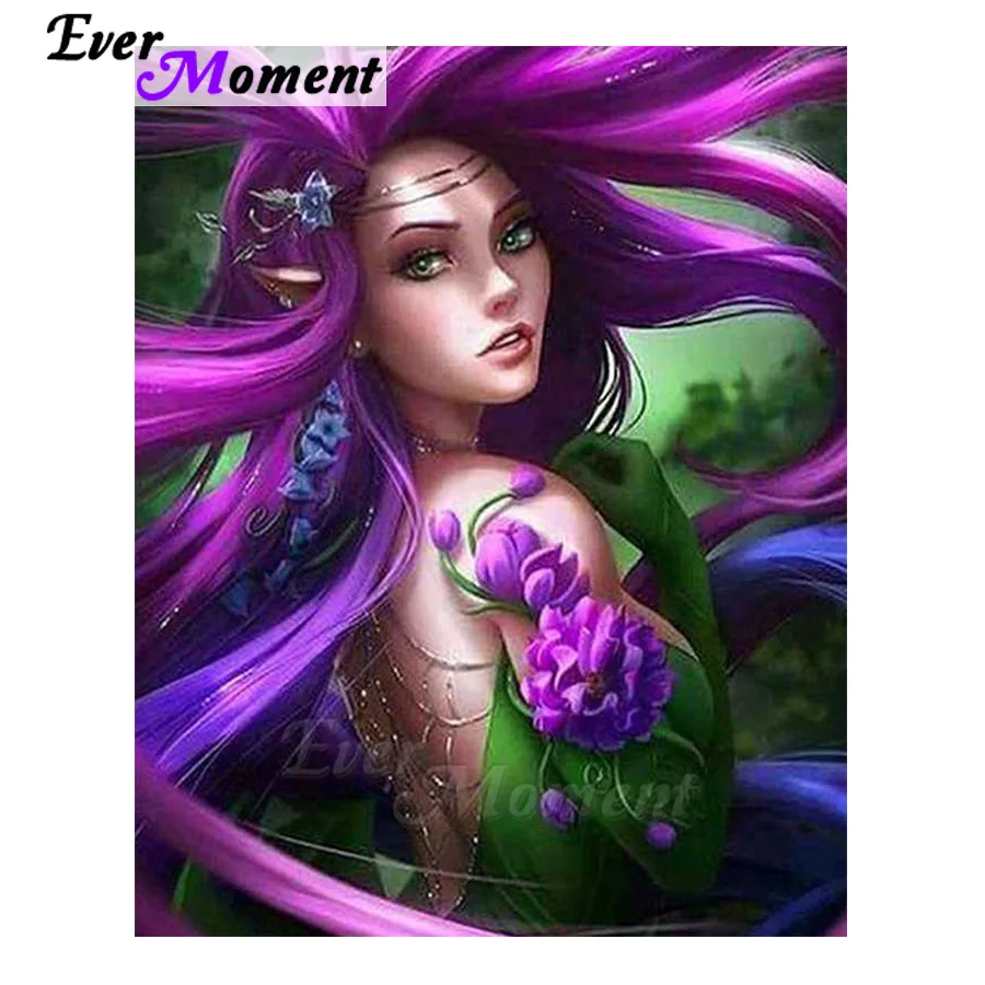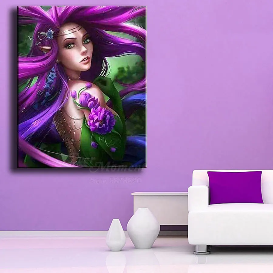 Картины алмазные полноразмерные с фиолетовыми волосами 5L366, 5L366