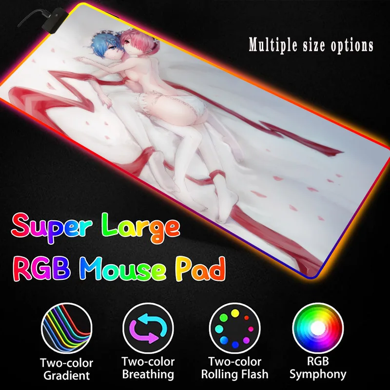 Игровой коврик для мыши Re Zero Sexy Girl с аниме RGB, большой игро...