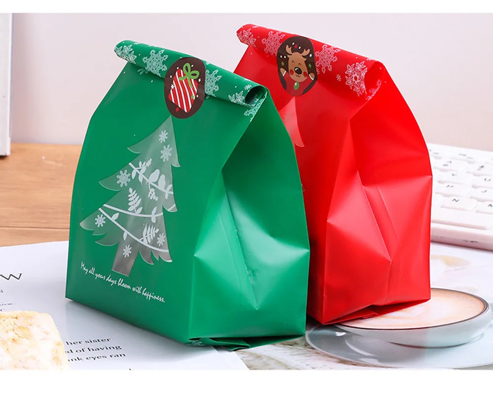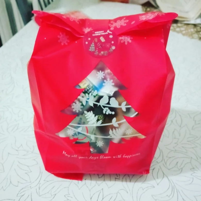 25 шт.лот пластиковые подарочные пакеты, пакет для упаковки рождественской елки, снежинки, коробки для конфет с наклейками, Рождественский Декор для свадебвечерние