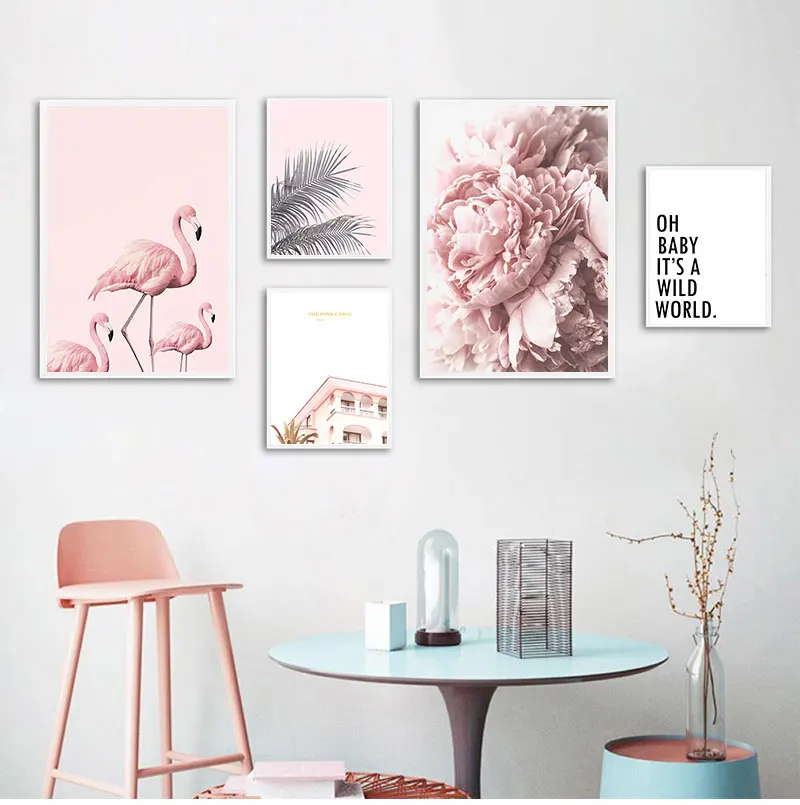 Скандинавский фламинго, цветок, настенное искусство, холст, розовый минималистичный принт, картина, скандинавский декор, картина для гостиной, Декор