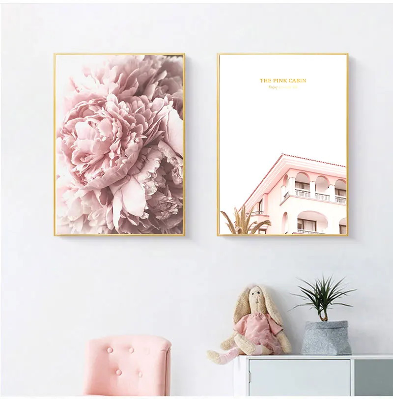Детская стена искусство холст минималистская Ванна животных Розовый...