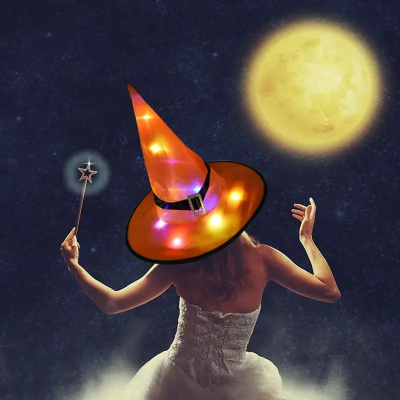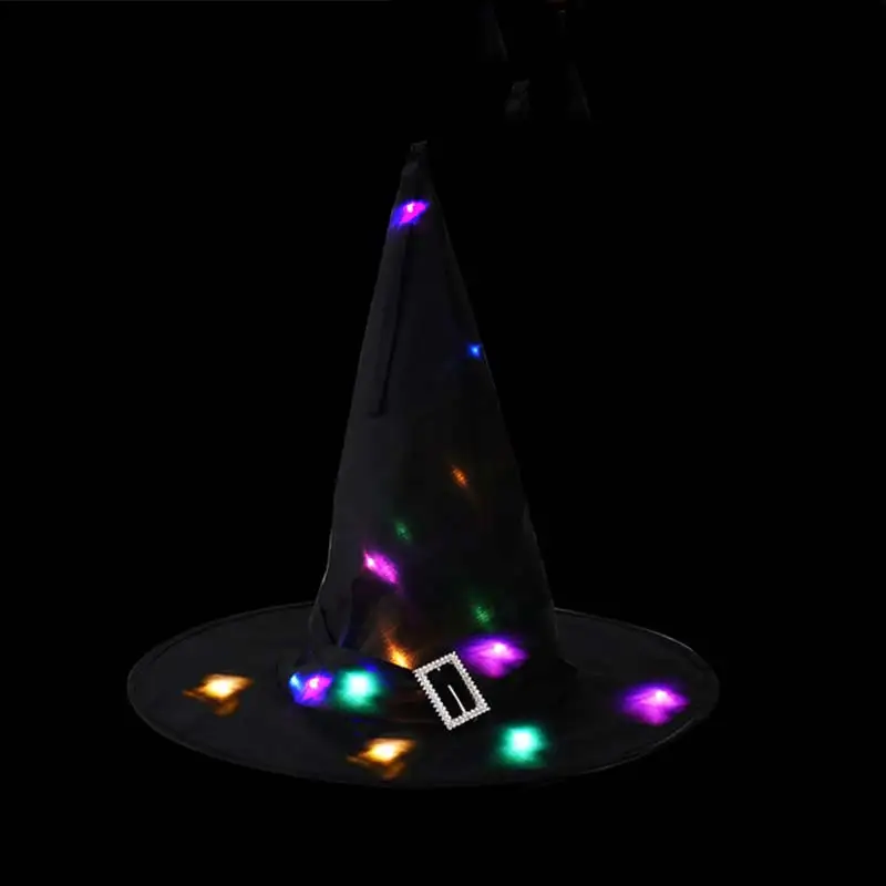 Светящаяся шляпа ведьмы на Хэллоуин, детская и взрослая шляпа ведьмы со светодиодной подсветкой, праздничное подвесное украшение для вечеринки, выпускного вечера, наряд, костюм, реквизит
