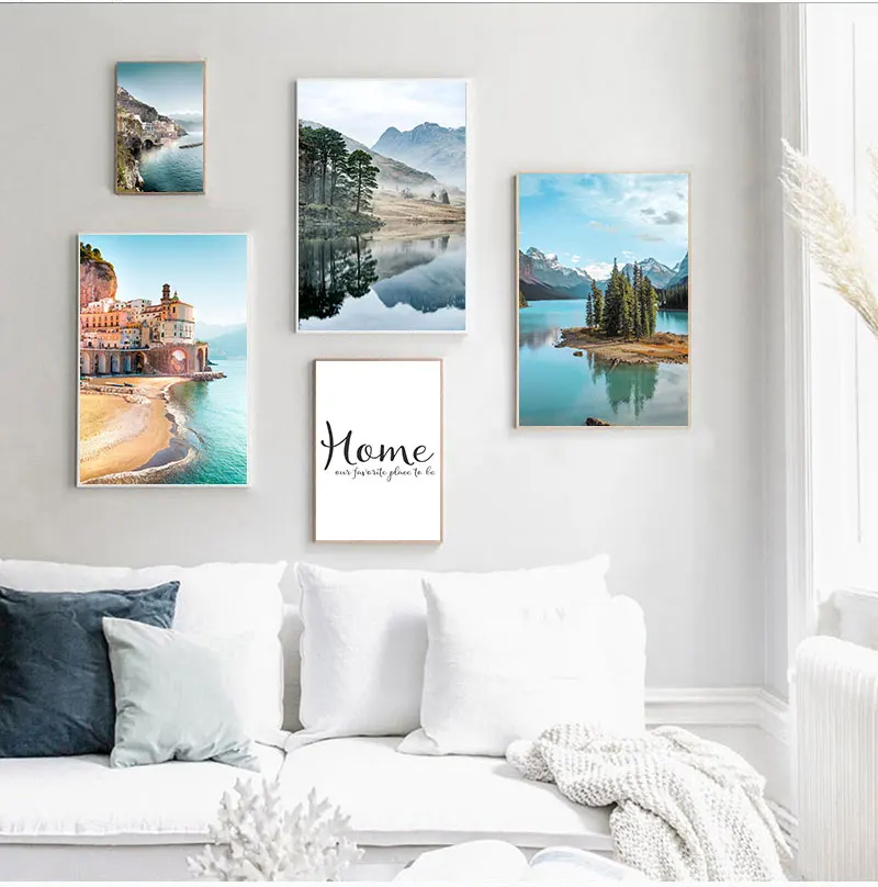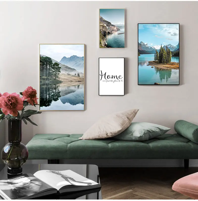 Картина с изображением гор, озера, отражения, природы, скандинавский декор, береговая линия, городской пейзаж, печать на стене, искусство на холсте