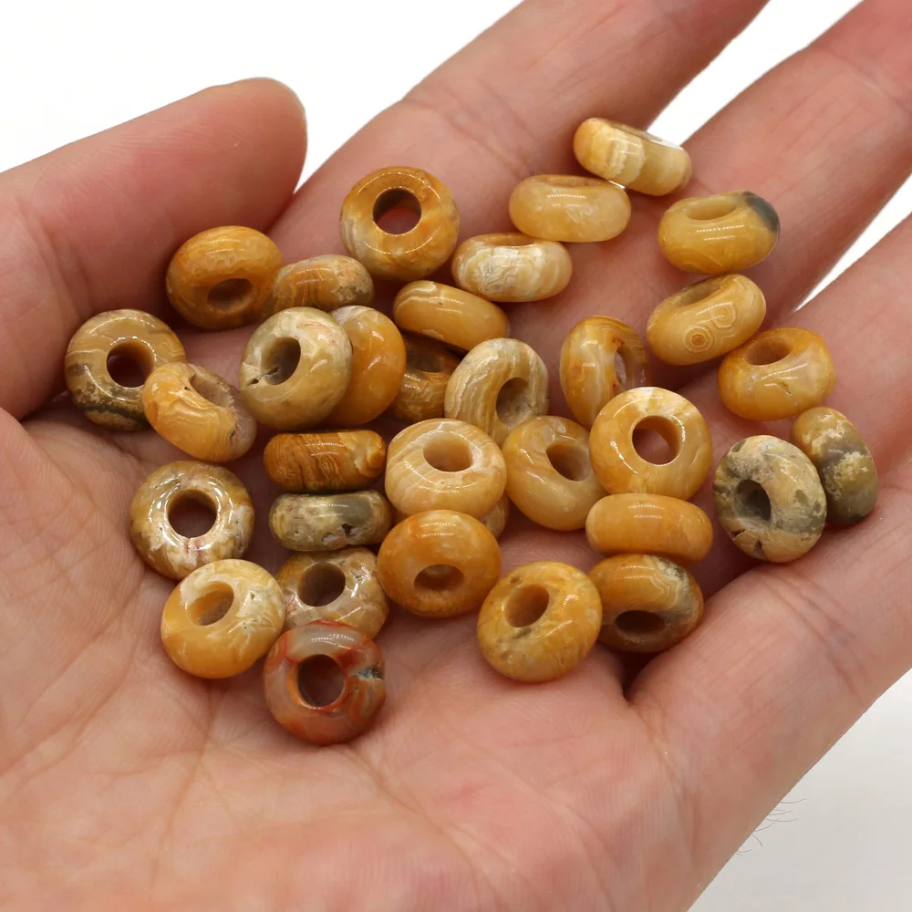 Бирюзовые Бусины Из Натурального кварца с розой для женщин, круглые, с большим отверстием бусины россыпью для изготовления ювелирных изделий сделай сам, ожерелье размером 5x10 мм, отверстие 4 мм, 10 шт.