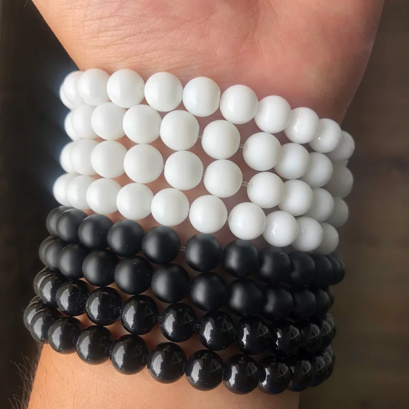 Название камня: черно-белые матовые Ониксовые Агаты, гладкие круглые бусины