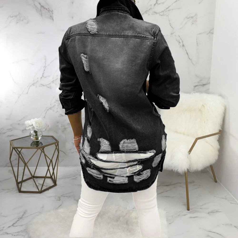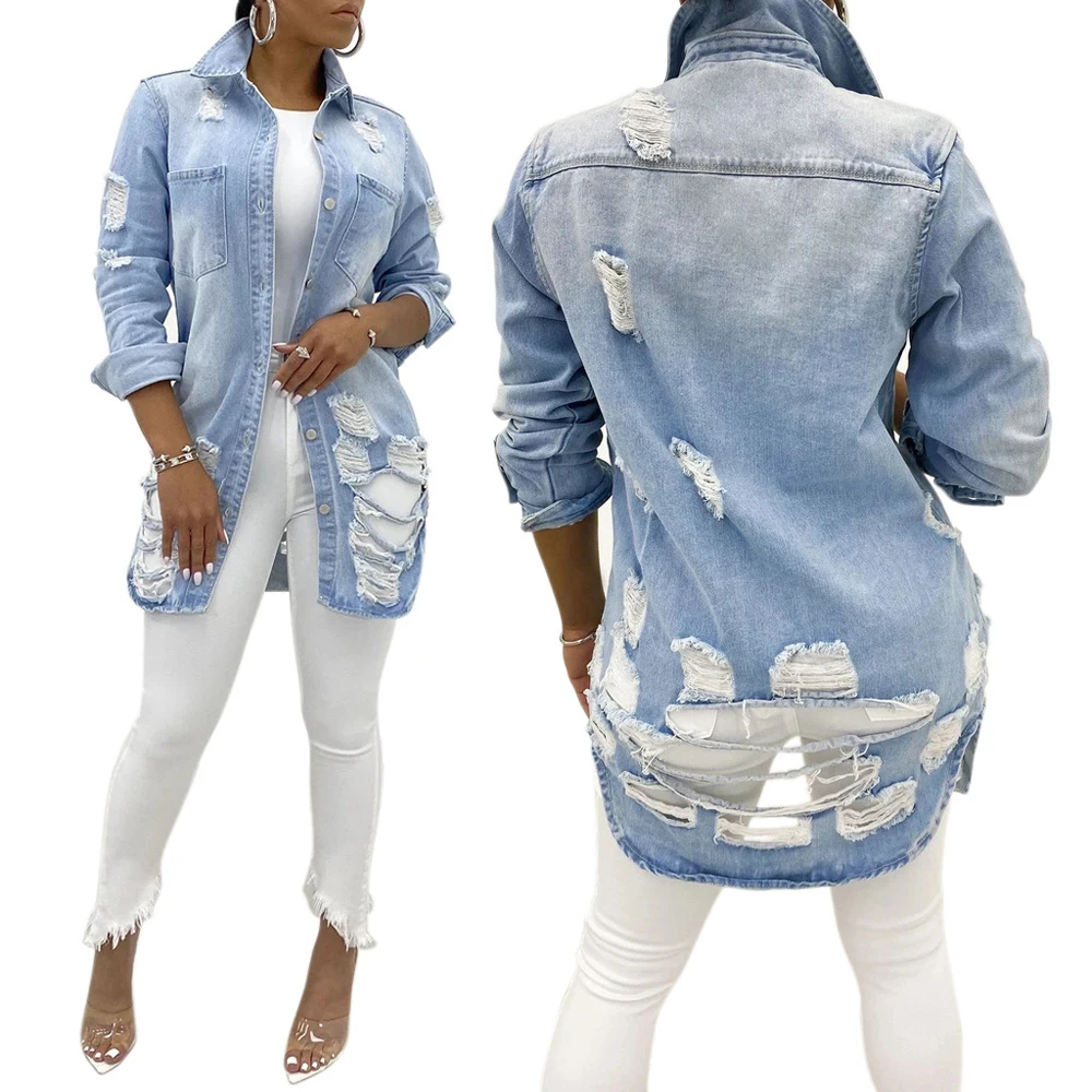 Уличной моды 2021 женские рваные джинсовые пальто однобортная джинс...