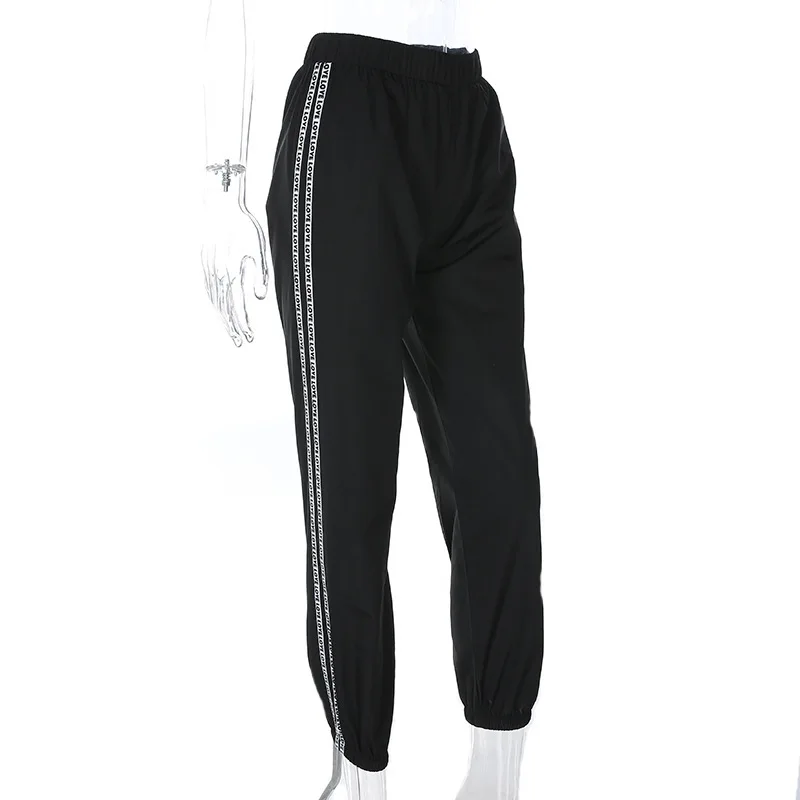 Женские спортивные штаны с принтом в полоску HOUZHOU, черные спорти...