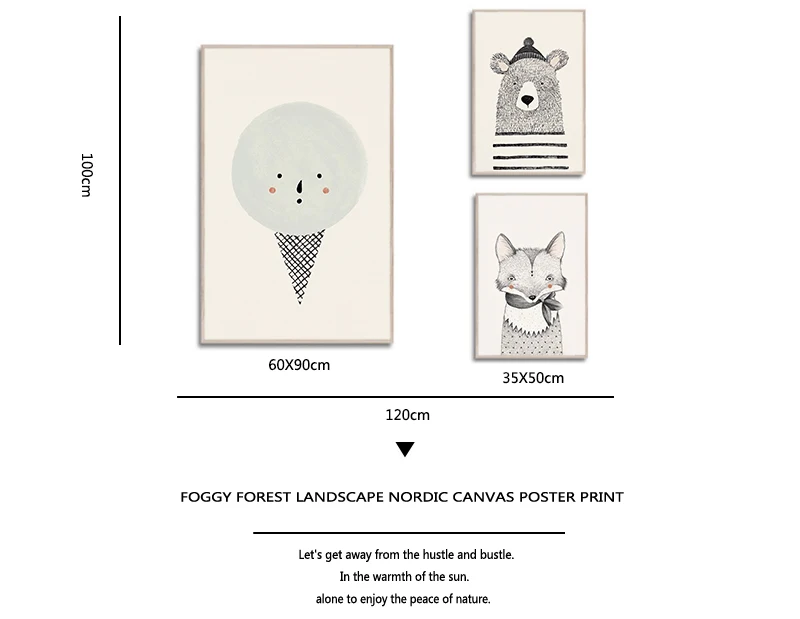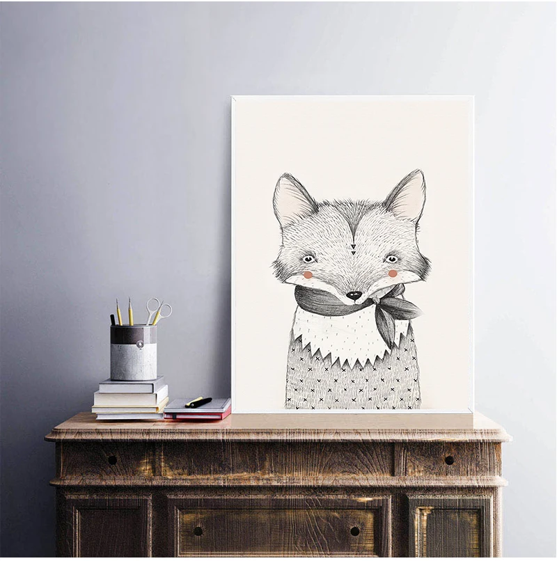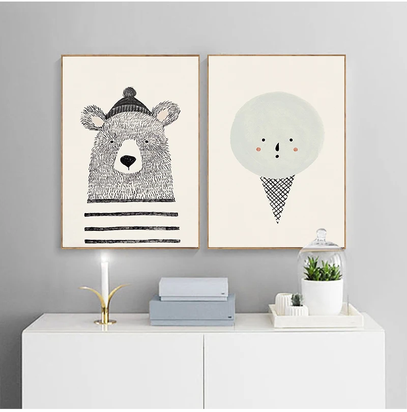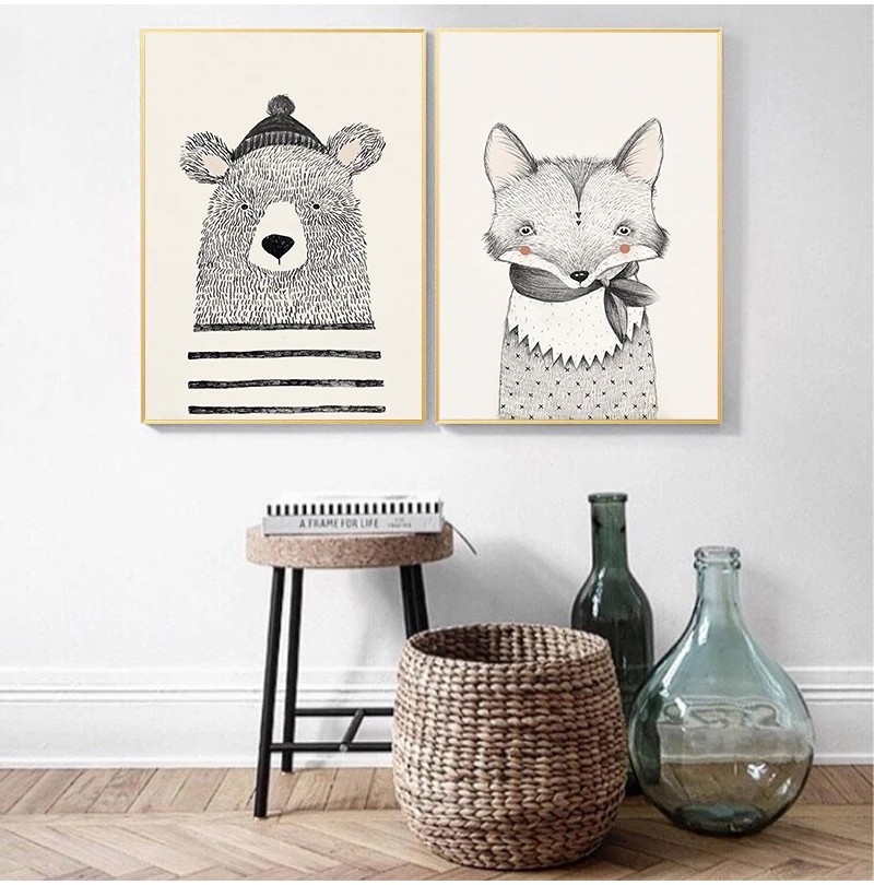 Скандинавская Картина на холсте с изображением медведя лисы, мультяшное животное, Настенная картина, украшение для детской комнаты