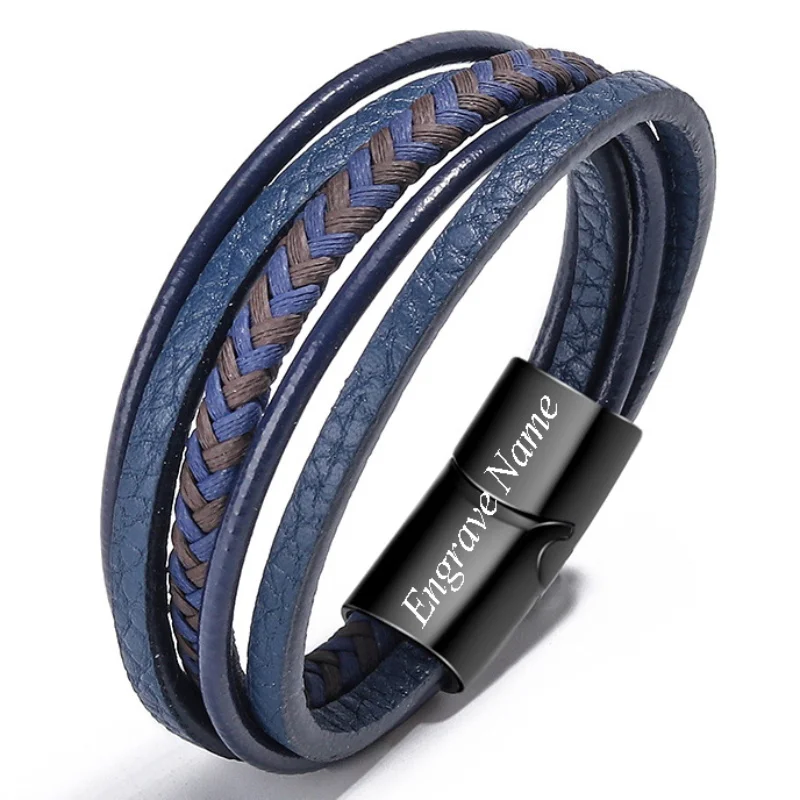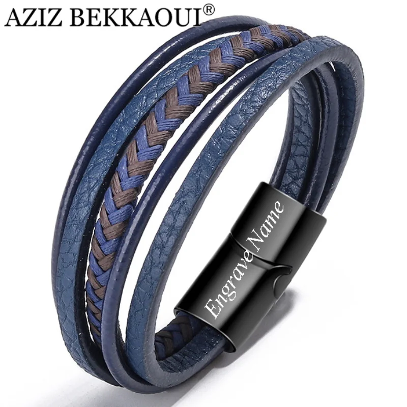 Многослойный мужской браслет AZIZ BEKKAOUI ручной работы, гравировка имени, плетеный кожаный браслет, магнитный браслет из нержавеющей стали