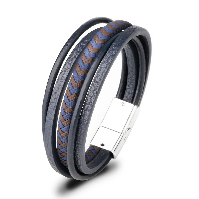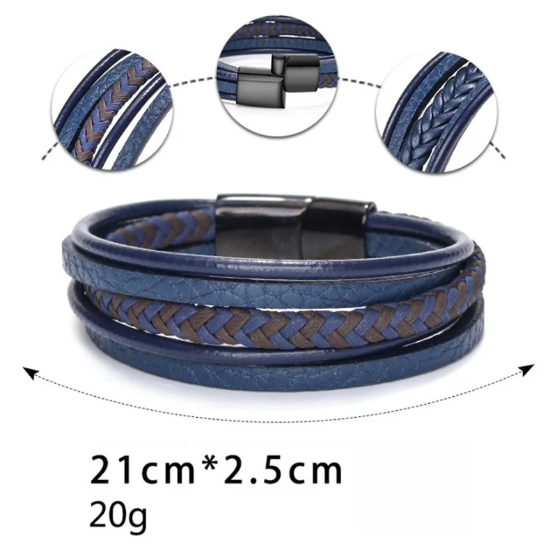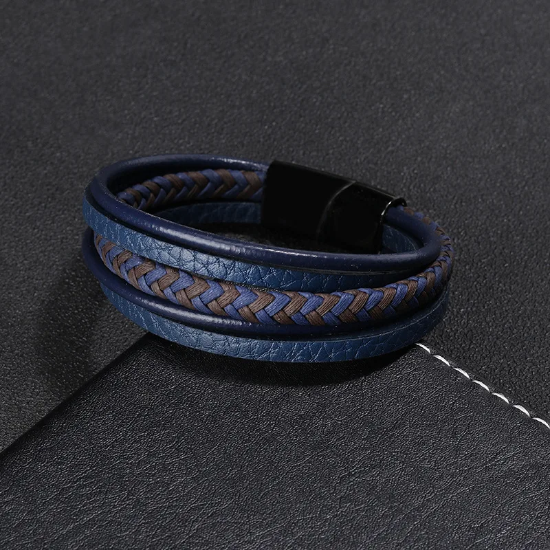 Мужской многослойный браслет AZIZ BEKKAOUI, плетеный кожаный браслет из нержавеющей стали, магнитный браслет с застежкой
