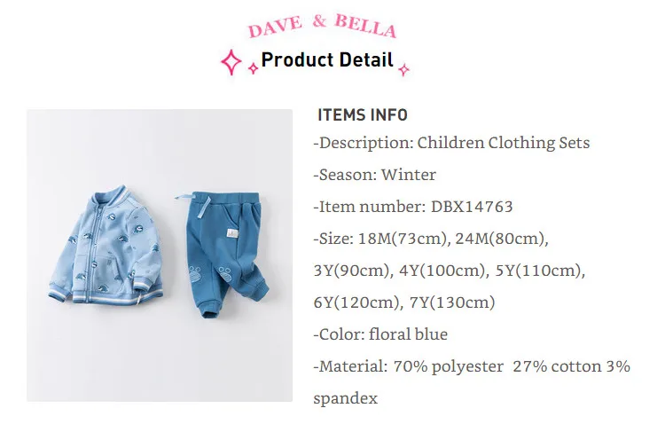 DBX14763 dave bellaмодные зимние комплекты одежды для маленьких мальчиков с рисунком и карманами детские повседневные комплекты Детский костюм из 2 предметов