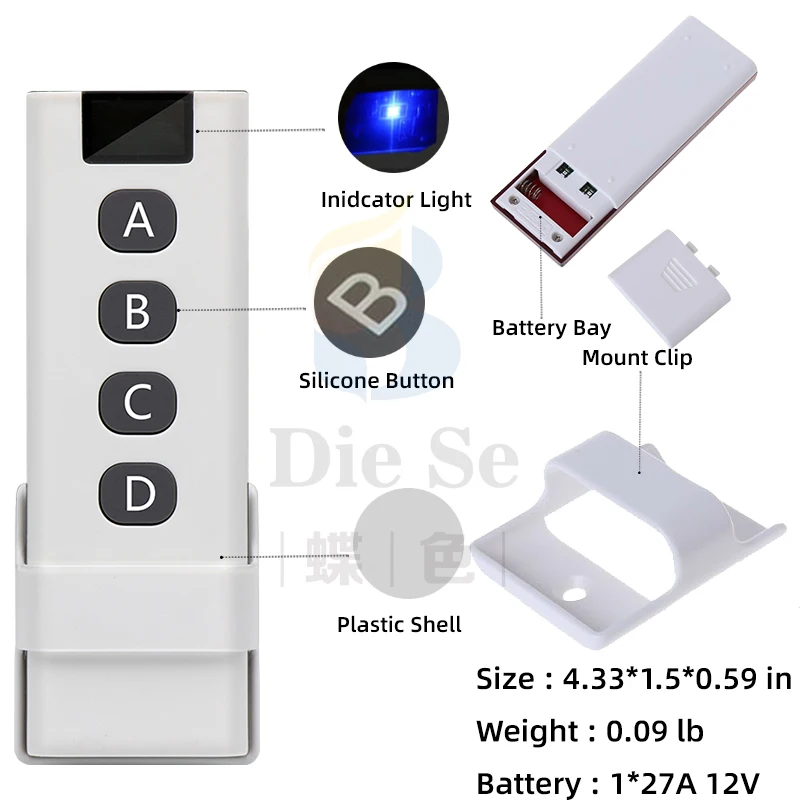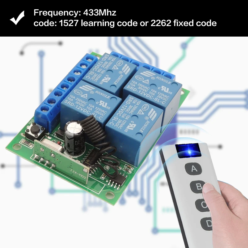 DieSe 433MHz переключатель дистанционного управления DC 12V 10A 4CH модуль приемника Мотор Управления Лер передатчик 4 кнопки для светильник/вентилятор/умный дом
