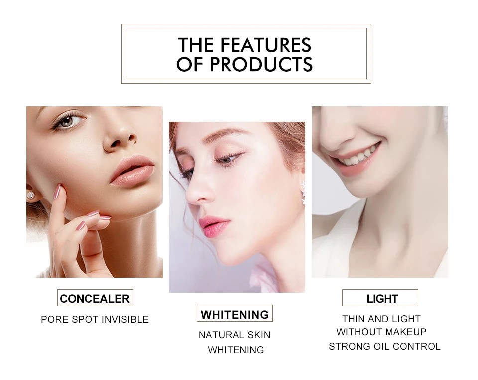 (1) Создайте Деликатный макияж-анти-масло и анти-пот весь день макияж, высокий консилер, скрытые поры, не бойтесь высокой температуры, отличный эффект контроля масла, С утра до ночи, нижняя часть макияжа такая же красивая, как когда-либо. (2) светильник, увлажняющий тональный крем, повышает вашу кожу до безупречности с помощью этого пуха-светильник, увлажняющий эффект поможет вам получить естественную отделку, в течение минимального количества времени. (3) Создайте увлажняющий макияж-основа Влажная и гладкая, с хорошей пластичностью, и она равномерно распределяется, особенно деликатный и светильник. (4) без масла-чистый и освежающий, дающий вам удобный и изысканный опыт, попрощайтесь с жирной и раздраженной жизнью. (5) Доступно в 2 вида цветов-номер цвета разнообразен, и вы можете выбрать подходящий для вас, если у вас есть какие-либо вопросы о продукте, пожалуйста, свяжитесь с нашей службой поддержки клиентов.