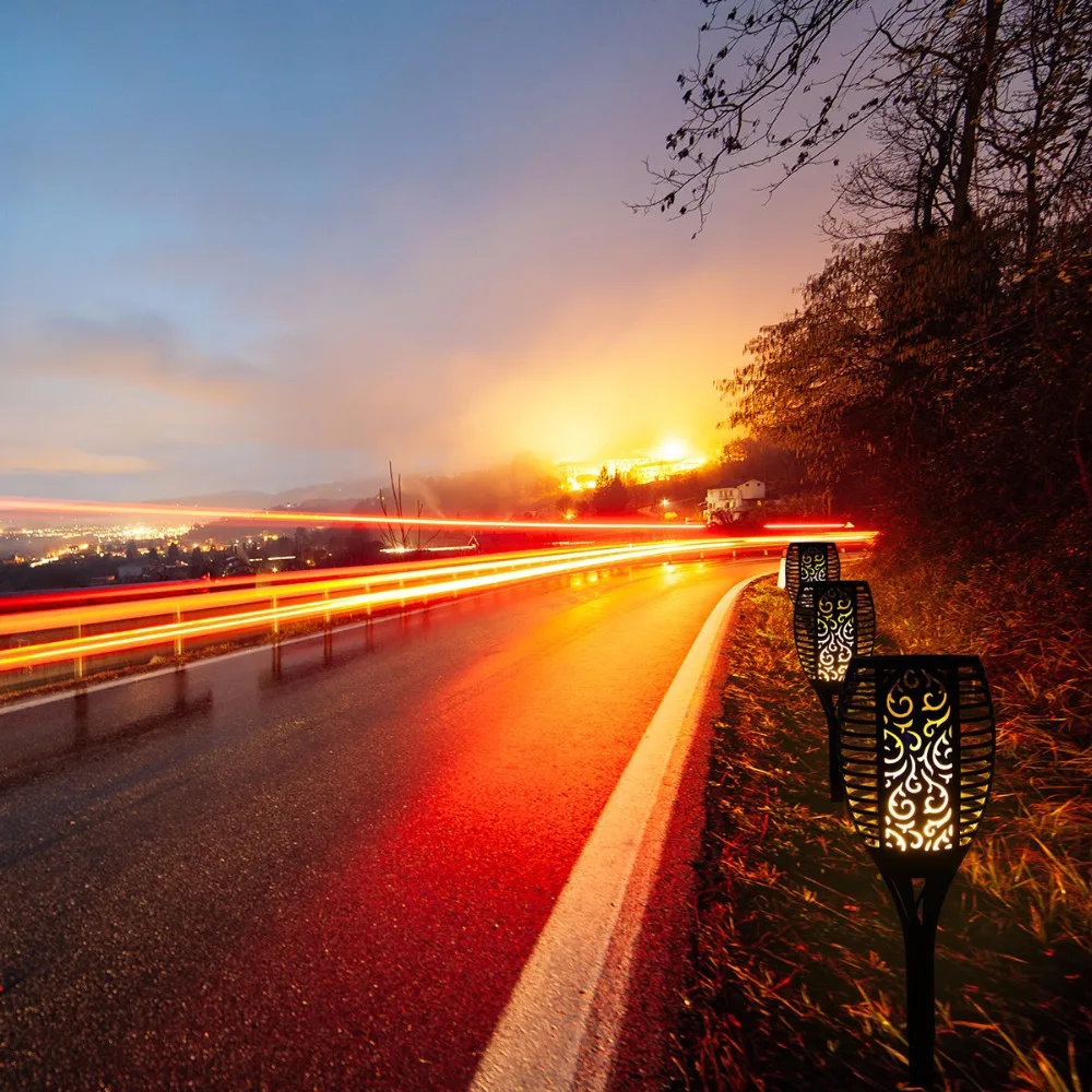 4. Мерцающий светильник с факелами собирает солнечную энергию в течение всего дня, затем автоматически включается в сумерках.