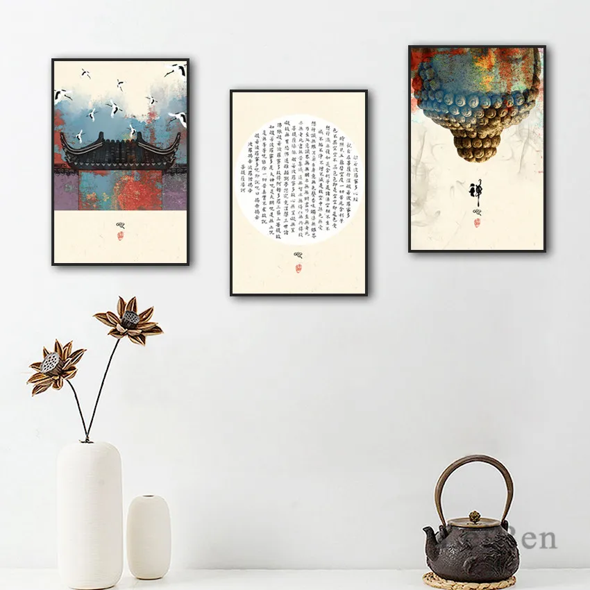 Новый постер в китайском стиле с буддистскими писаниями, простота и элегантные традиционные настенные картины на холсте дзен, настенное искусство, Декор для дома