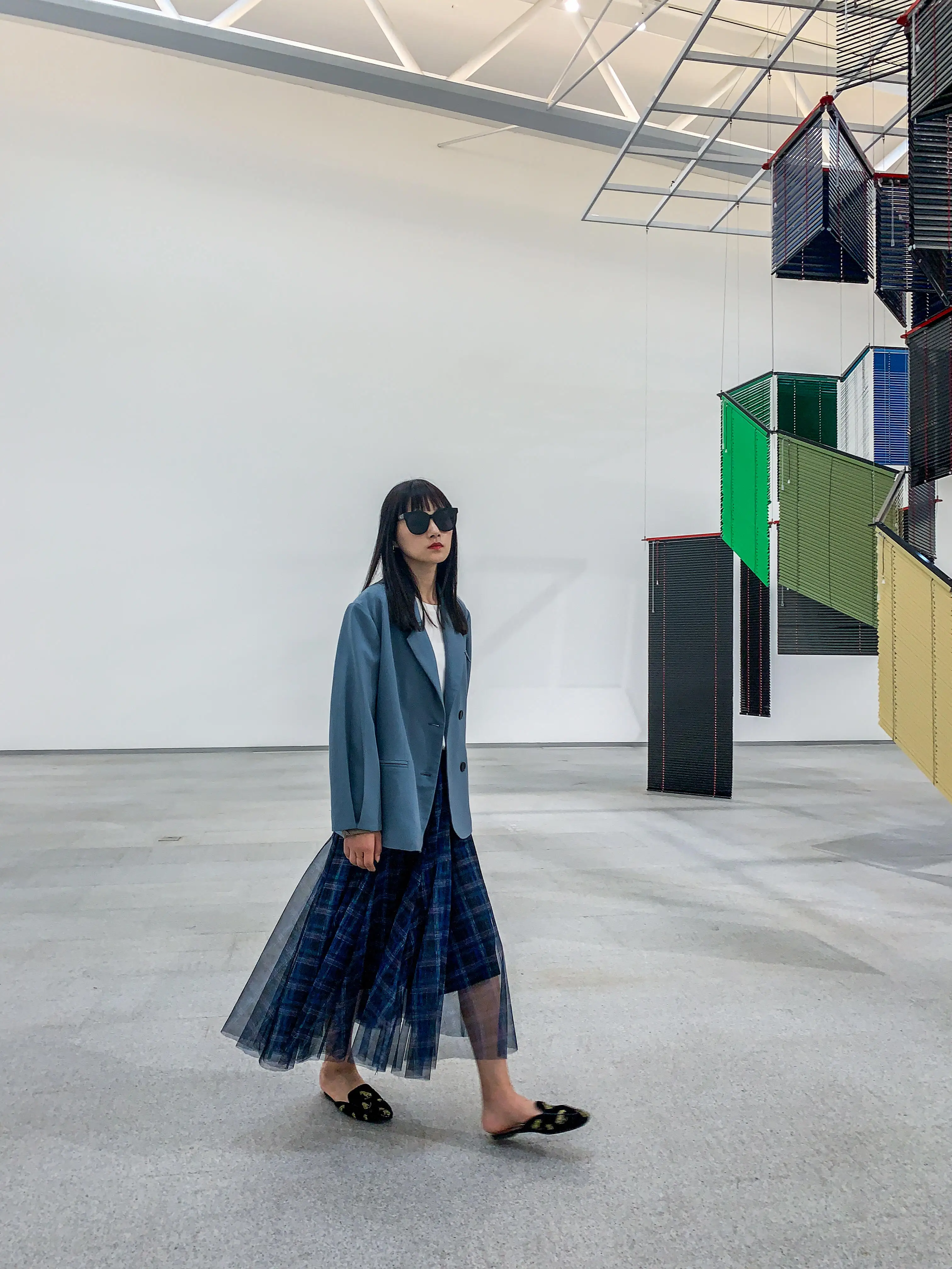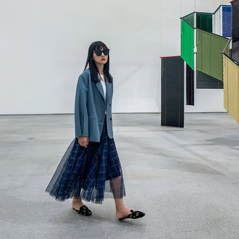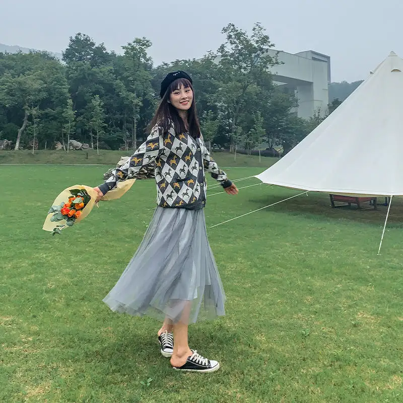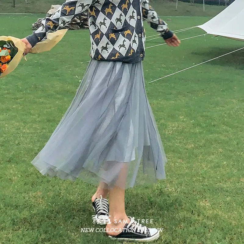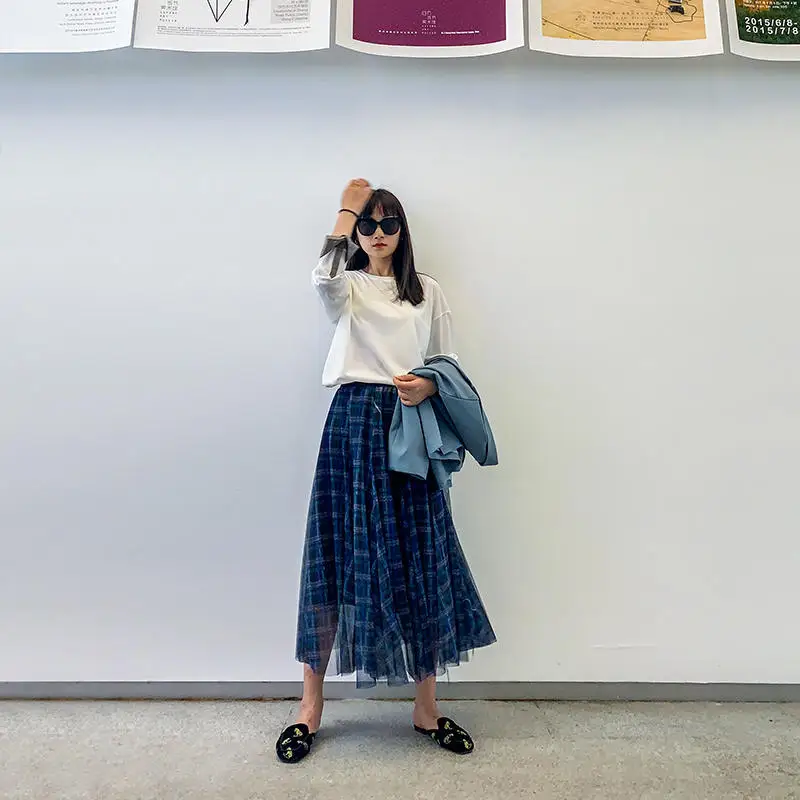 Женская Повседневная сетчатая юбка ELFSACK, синяя клетчатая юбка трапециевидной формы с высокой талией, винтажная серая однотонная повседневная юбка ELF в Корейском стиле, 2020